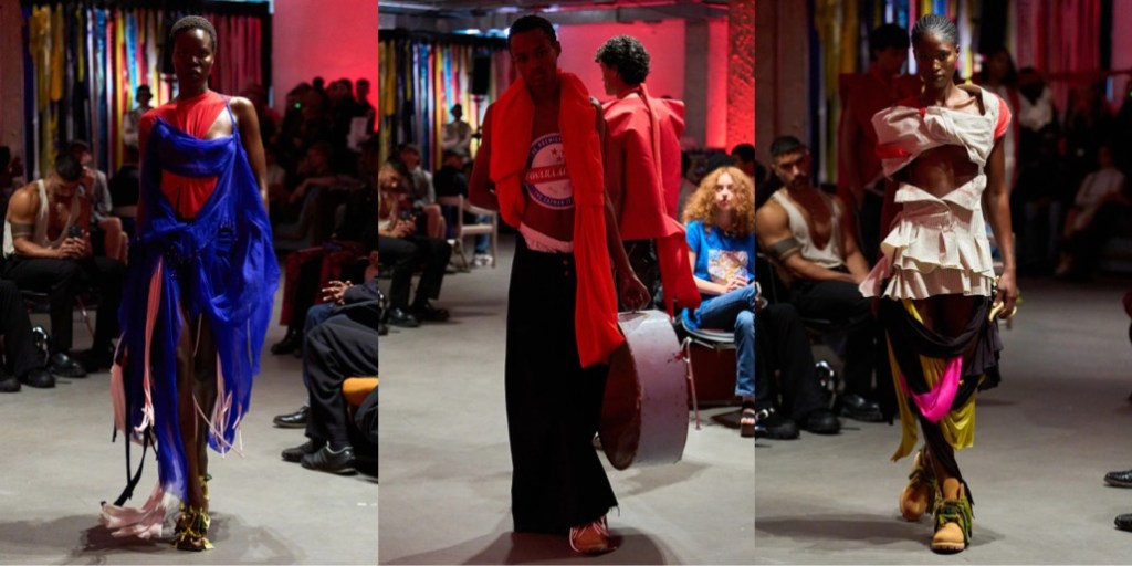 For Alleyne, embarking on his journey as a designer and delving deeper into his Caribbean identity has been therapeutic. While growing up, he resented the limitations of being so far away from the world’s fashion capitals, and he looked to heroes in Paris like Alber Elbaz, Alexander McQueen, and Karl Lagerfeld: “To me, being inspired by the islands felt a little bit restricting,” he said. But his interest in reconciling these two sides of himself has now ended up producing some of his most striking work. “I think there are a lot of brands that are just pulling from culture, and so I think it’s really important for me as a designer to make sure my collections aren’t just inspired by that culture but give back,” he added. It’s worth noting that Jawara is a fantastic colorist, knotting together kaleidoscopic fabrics into highly desirable, sensually-charged dresses and crafting a series of intriguing ombré dyed looks. London sees a wave of emerging designers with a knack for deconstructionist approach to clothes, and that’s really exciting to observe.