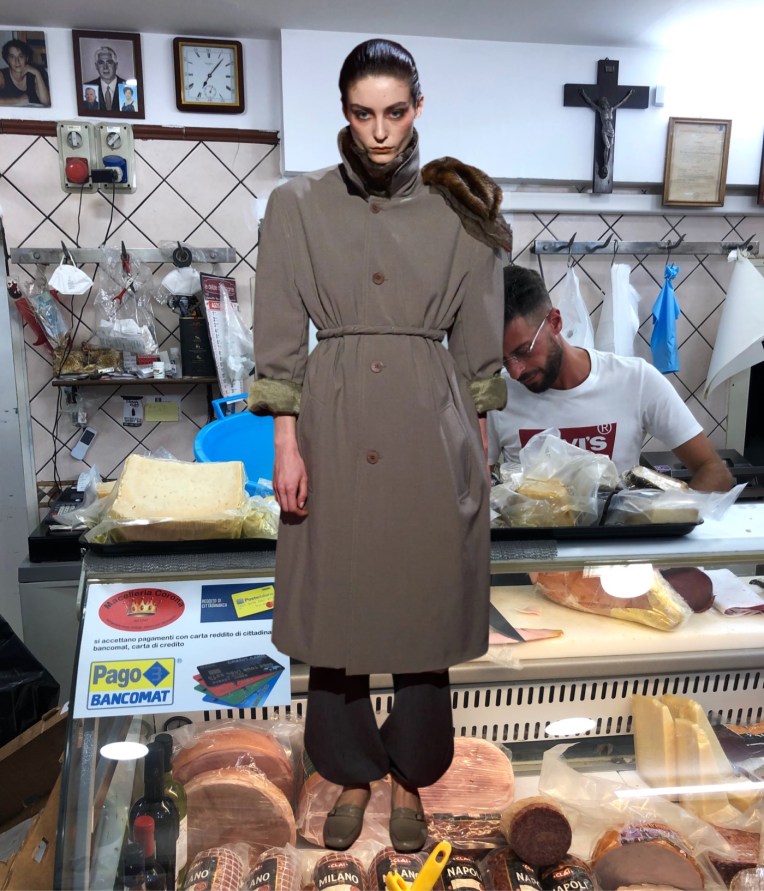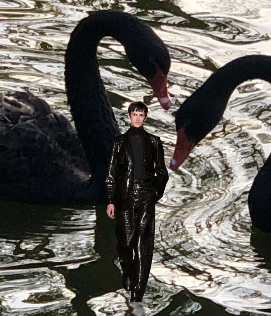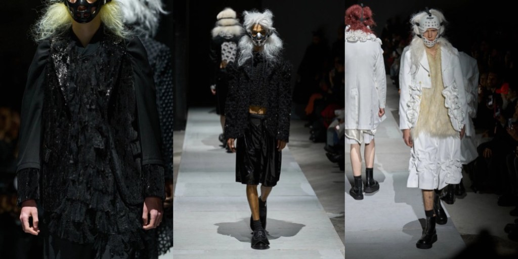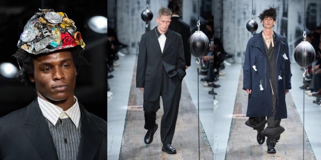 Elsewhere, padded coats arrived in stony beige; hair was teased into frizzy, defiant bouffants; and crushed beer cans were reassembled into a waistcoat and headgear – wry, César Baldaccini–inspired gestures that felt like survivalist poetry. In a fashion system obsessed with novelty and noise, Yamamoto continues to propose something rarer: clothes as stance, as shield, as a way of moving through the world with controlled defiance. It is precisely this posture – sharp, slightly arrogant, unyielding – that makes him not just relevant, but essential, one of the last designers of his generation for whom dressing remains an ethical act.