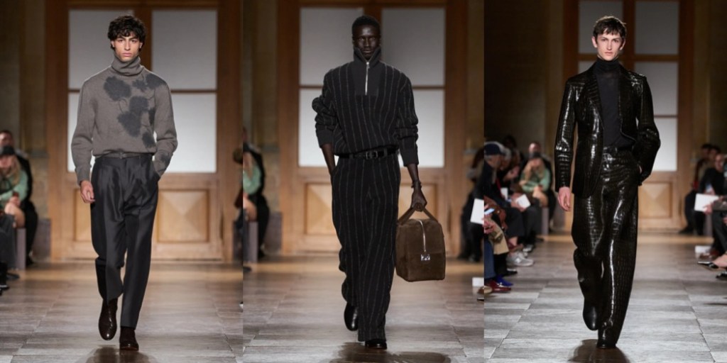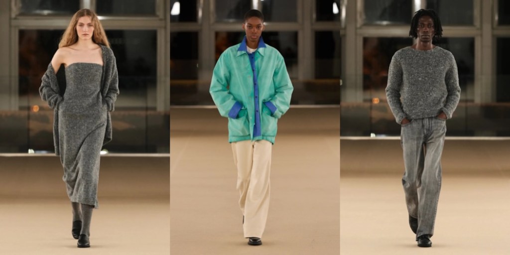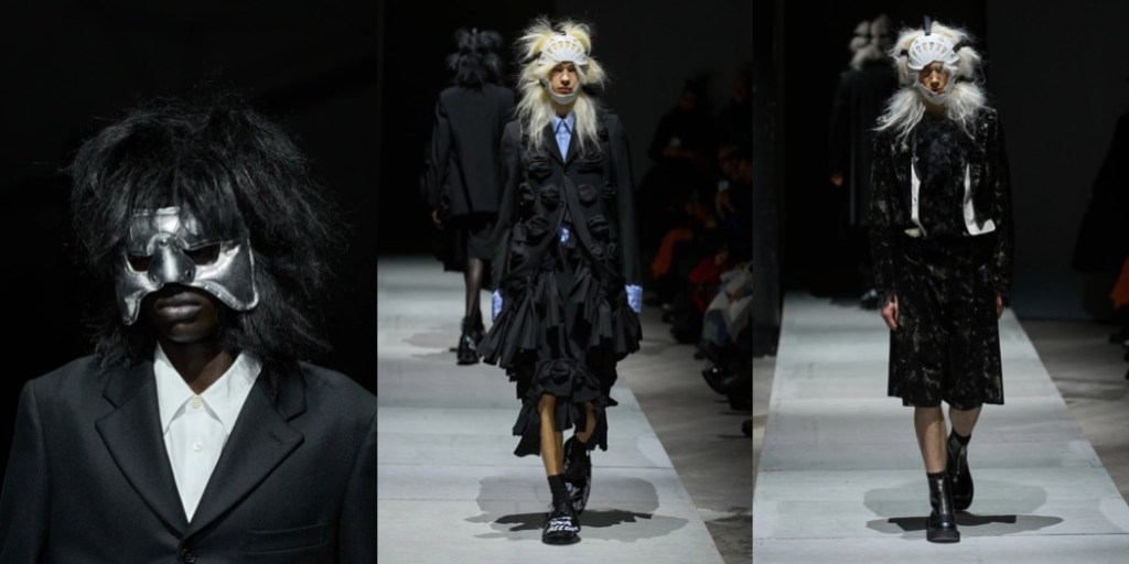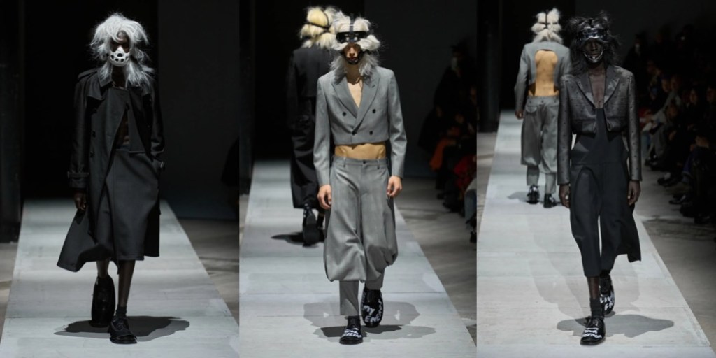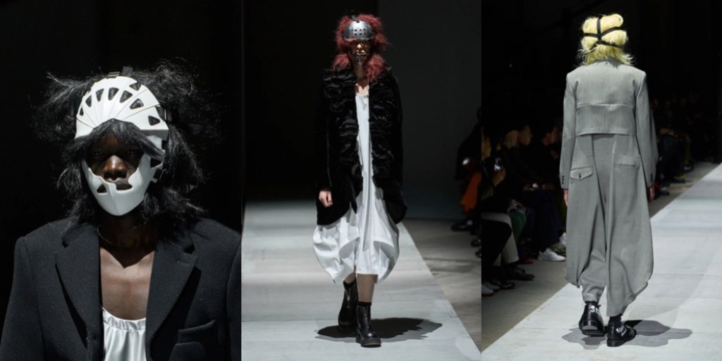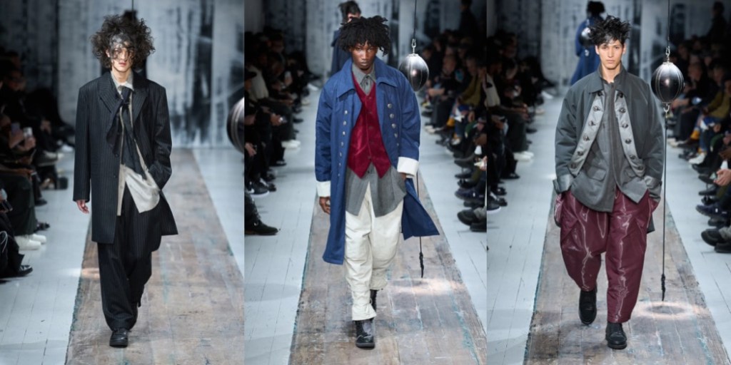 Yohji Yamamoto, a designer so often – and so productively – faithful to black, detonated expectations this season. Guests entering the show space were met by two suspended speed bags, hovering between the ceiling and the runway. When the models emerged, some punched the bags, others barely brushed them; one kissed one, while a few simply stared. It was a telling prelude to a collection about confrontation and restraint, aggression and dignity – about how clothing can act as a kind of moral armor.