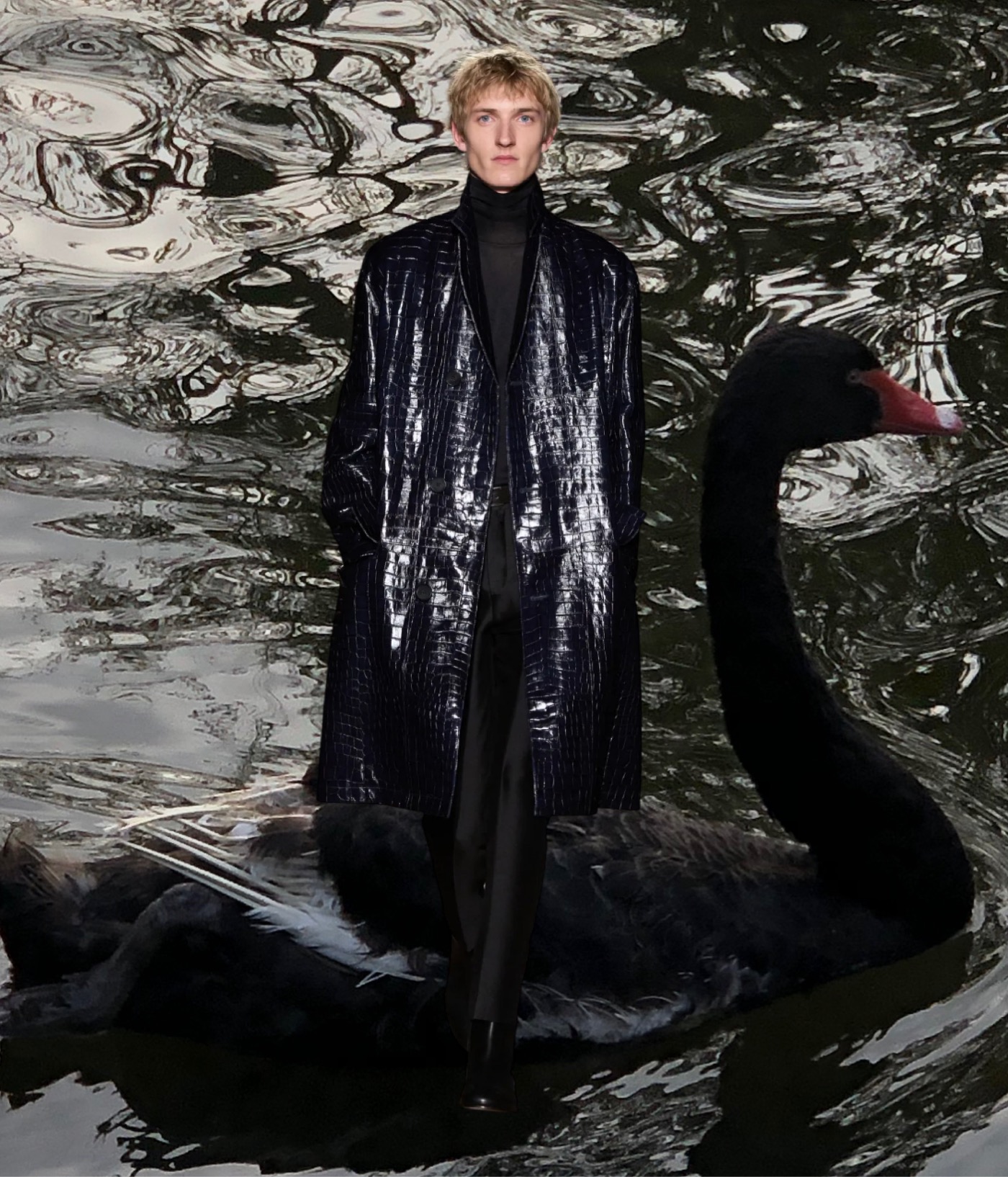 Elsewhere, padded coats arrived in stony beige; hair was teased into frizzy, defiant bouffants; and crushed beer cans were reassembled into a waistcoat and headgear – wry, César Baldaccini–inspired gestures that felt like survivalist poetry. In a fashion system obsessed with novelty and noise, Yamamoto continues to propose something rarer: clothes as stance, as shield, as a way of moving through the world with controlled defiance. It is precisely this posture – sharp, slightly arrogant, unyielding – that makes him not just relevant, but essential, one of the last designers of his generation for whom dressing remains an ethical act.