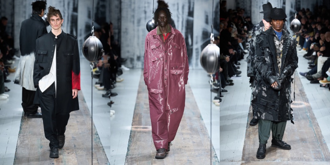 Yohji Yamamoto, a designer so often – and so productively – faithful to black, detonated expectations this season. Guests entering the show space were met by two suspended speed bags, hovering between the ceiling and the runway. When the models emerged, some punched the bags, others barely brushed them; one kissed one, while a few simply stared. It was a telling prelude to a collection about confrontation and restraint, aggression and dignity – about how clothing can act as a kind of moral armor.