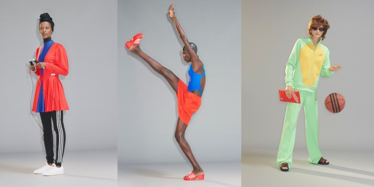 To keep desire thrumming for its diverse audience, which is the point of these mid-season collections, the show was divided into three parts. It started with the introduction of a new “Garde-Robe,” or wardrobe, of what Demna described as “upscale classic garments.” The offering, he said, was inspired by the relaunch of the house’s couture collection last year, which was built on a foundation of tailoring. “I realized we were missing this segment of the classic wardrobe,” he explained. Classic here meant suits and overcoats, cut in the oversized, drop-shoulder shape Demna favors, and which have become hugely influential at all levels of fashion in the wake of that couture debut. Voluptuous silk jacquard pussybow blouses à la Melanie Griffith in Working Girl acted as accompaniments. The second element of the collection was eveningwear in the form of second-skin sequined gowns and silk trench dresses with trains whose supreme elegance wasn’t undercut by the pneumatic padded pumps they were worn with. In contrast, the super-sized lace-up boots that were paired with many of the show’s other looks and modeled by Ye in the front row were memeably outlandish in their proportions. Part three showcased Demna’s collaboration with Adidas. If he was trying to shake off the image of Balenciaga as a maker of high-class hoodies with Garde-Robe this section drove home the continued dominance of the sportswear category. There were tracksuits, scaled up t-shirts, boxer’s robes, and track dresses, all bearing adidas’s iconic stripes, a modified trefoil logo, or the Balenciaga name spelled in its partner’s lowercase typeface. Much of it was available to buy or pre-order on Balenciaga.com directly after the show. Set against the background of a glitchy stock market and an imminent system crash, this Balenciaga show was confident, versatile, and dangerous. But also how simple, yet so genius. That’s Demna all over.