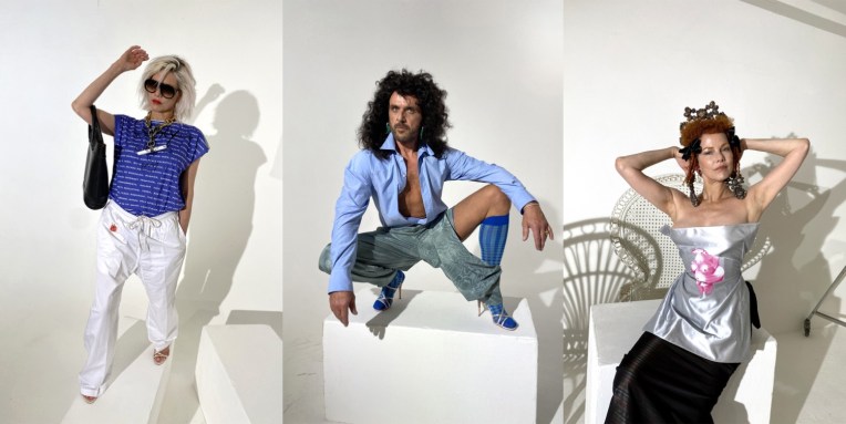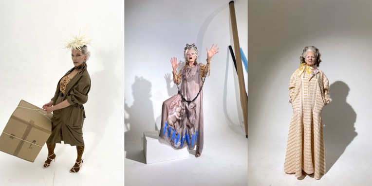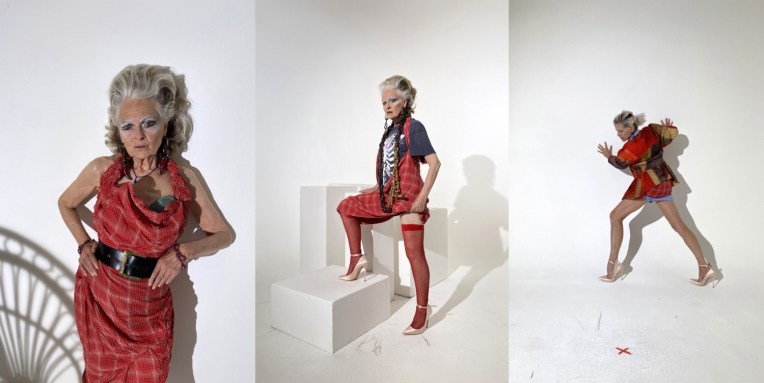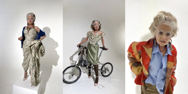 Vivienne Westwood is the queen, and Andreas Kronthaler loves to embrace that. In his homemade lockdown look book and film, Kronthaler gave Dame Viv such a powerfully Iron Lady coif he confessed that even he saw a passing resemblance. “But in the end the look we went for was more Raine Spencer,” he added over Zoom, referring to the British socialite. Perhaps it was the concentrated nature of this minimally staffed shoot – four models in all, shot by Kronthaler (who doubled as one of them) on his iPhone, with the intention of limiting as far as possible Westwood’s exposure – but it resulted in an especially intense expression of Andreas’ work to reflect that of his muse and wife. There was a lovely symmetry in the casting of Sara Stockbridge, a longtime Westwood model, who joined what looks like a fun day of dressing up. Garments to love include the Buy Local London map–print shirt worn by Stockbridge, VW in full “Acid Raine” mode, and Kronthaler in leggings and a wig that harked back to Flashdance. The clothing was as archetypally of the house as the expression was divertingly barking. Sustainable, sensational, confrontational, and uncontainable. And the look-book is a visual treat.