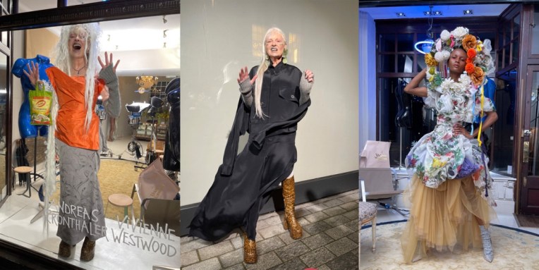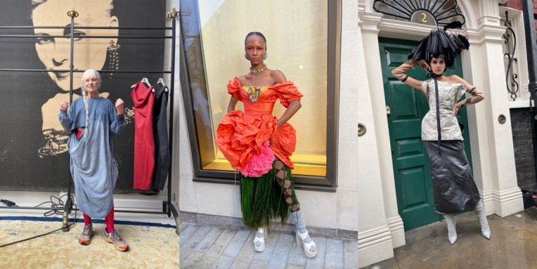 For Andreas Kronthaler and Vivienne Westwood, one unintended consequence of lockdown was a passionate rediscovery of My Fair Lady. Combined with a timely refurbishment of their 1980s vintage couture store on London’s Davies Street, the result was a collection and video titled Mayfair Lady. “It’s an incredible place,” said Kronthaler of the area. “It’s full of history, and you can feel that it was once the center of the world’s most powerful country.” In the autumn-winter 2021 collection’s film, the couple and their talented cast (headed by Caroline Polachek!) showcase Kronthaler’s collection in and around the store, strolling giddily past the London streets. The collection is a joyfully haphazard collage of references (flower girl headpiece, professor’s robe, and so on) sprinkled within a typically anarchic Kronthaler context. Many of the pieces were upcycled, and the designer said his shapes were sometimes dictated by the scraps of fabric available. “We express ourselves in clothes when we dress up,” said Kronthaler in his press notes. Timeless truth.