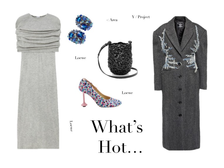 Area‘s Piotrek Panszczyk is a maximalist; when he loves a theme, he goes all the way with it. This see-now-buy-now collection’ the starting point was eyes, which led to cartoon eyes, which led to the simplified shape of a circle inside another circle. “The eyes as a symbol just always speak to us because they connect so many of our favorite art forms like Pop Art in the ’60s or surrealism in the 1920s; from Warhol to Man Ray,” the designer said. The show opened with a simple mini shift dress in white leather with circular leather appliqués at the chest in the shape of eyes. Eye shapes were also cut out from pink leather to create an oversized coat and matching mini skirt in carnation pink, and another in white, which he paired with a high waist slim maxi skirt. Denim is a big category for Area and every season there is a new novel approach to the fabric. This season, he created a Dalmatian jacquard denim that was truly fantastic. The spring-summer 2024 collection has it all: for editorial, a very Balenciaga-esque long veiled-cape dress. And for those who fall in love with that piece, a pair of hot pants, an oversize shirtdress, a corset top, and of course, wide-leg jeans. Panszczyk can also create impact through minimalism. At the end of the show, the concept had been stripped back to its essence: a gold metallic ring with a crystal floating in the middle, floating in a sea of black cotton. It appeared at the center of a simple oversize cotton shirt, at the halter neck of an easy jumpsuit, and also on the breasts of a slim strapless shift.