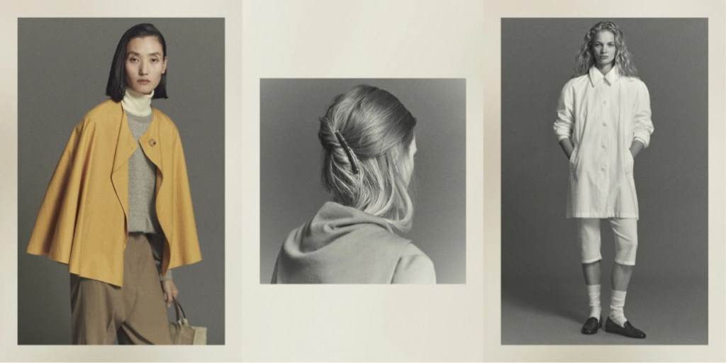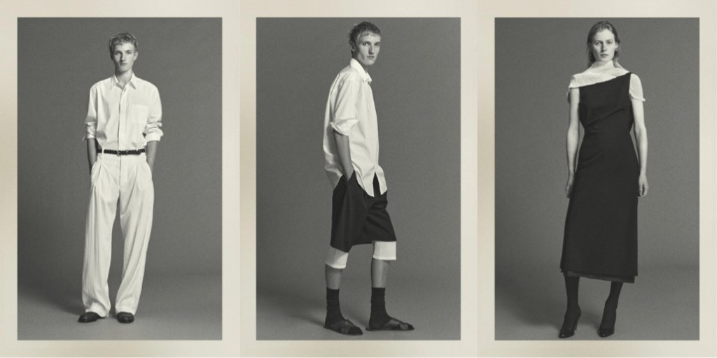 The new season images were photographed by Mark Borthwick, whose artful direction of movement and split-frame compositions lead around the season’s more straightforward silhouettes. Some are deceptively simple; see the rounded sleeves of a blouse that ripple down the arms when worn, or the double-layered coat with an exposed lining. Some are legitimately simple, such as the relaxed cuts of several men’s pieces. Meanwhile, tailoring is treated with a fluid touch.