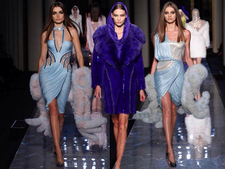 “Check it out, take it in, cuz that b*****? She’s so thin, she’s so rich, and so blonde, she’s so fab, it’s beyond.” And it’s Donatella Versace. The blond icon of fashion, who did the most sleekest collection of all for Versace’s Atelier this season. The Haute Couture week started in a steamy way, having Versace first on fire. The show was opened by Maria Carla Boscono, wearing a sexy, cut-out jacket and sleek black skirt. Then, again, the sleek blue top with a cut out skirt. So sexy. Voluminous gowns, killer heels and fringed skirts phreshed off the runway in purple / blue colours, but only Stella Tennant could be a perfect cherry on the top, in that meringue like gown… uph.