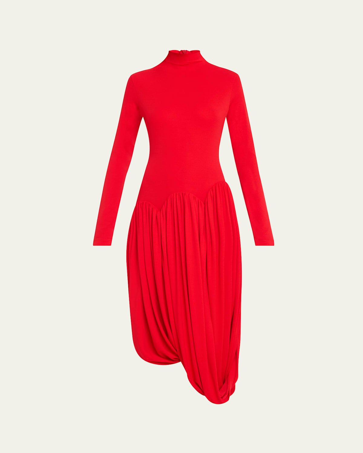 Ferragamo Tulip Hem Jersey Mock Neck Midi Dress