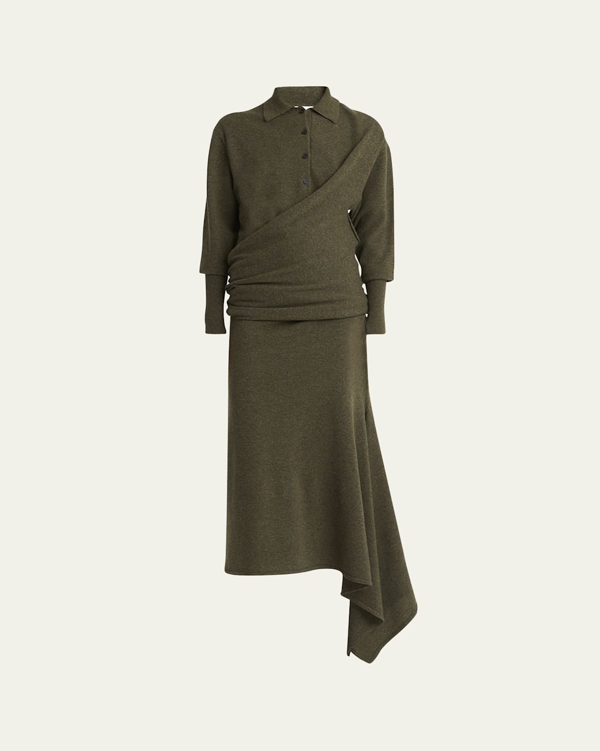 Ferragamo Cashmere-Blend Polo Sweater Dress
