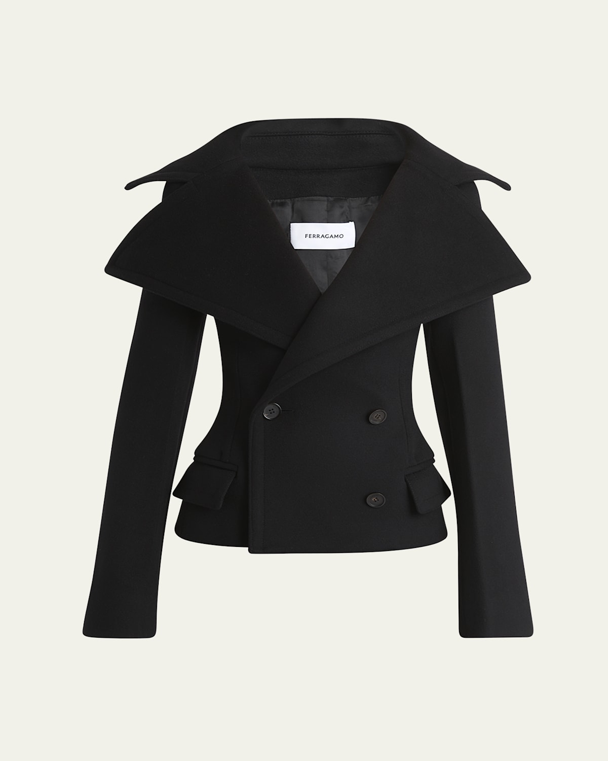 Ferragamo Wide Collar Double-Breasted Wool Cashmere Jacket