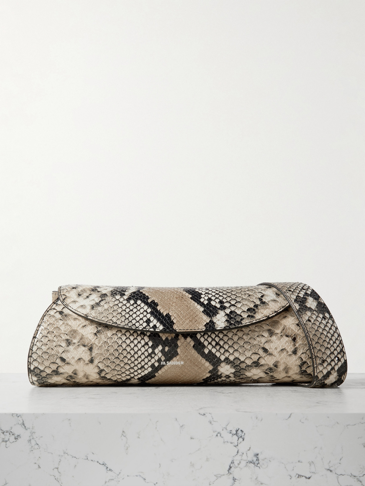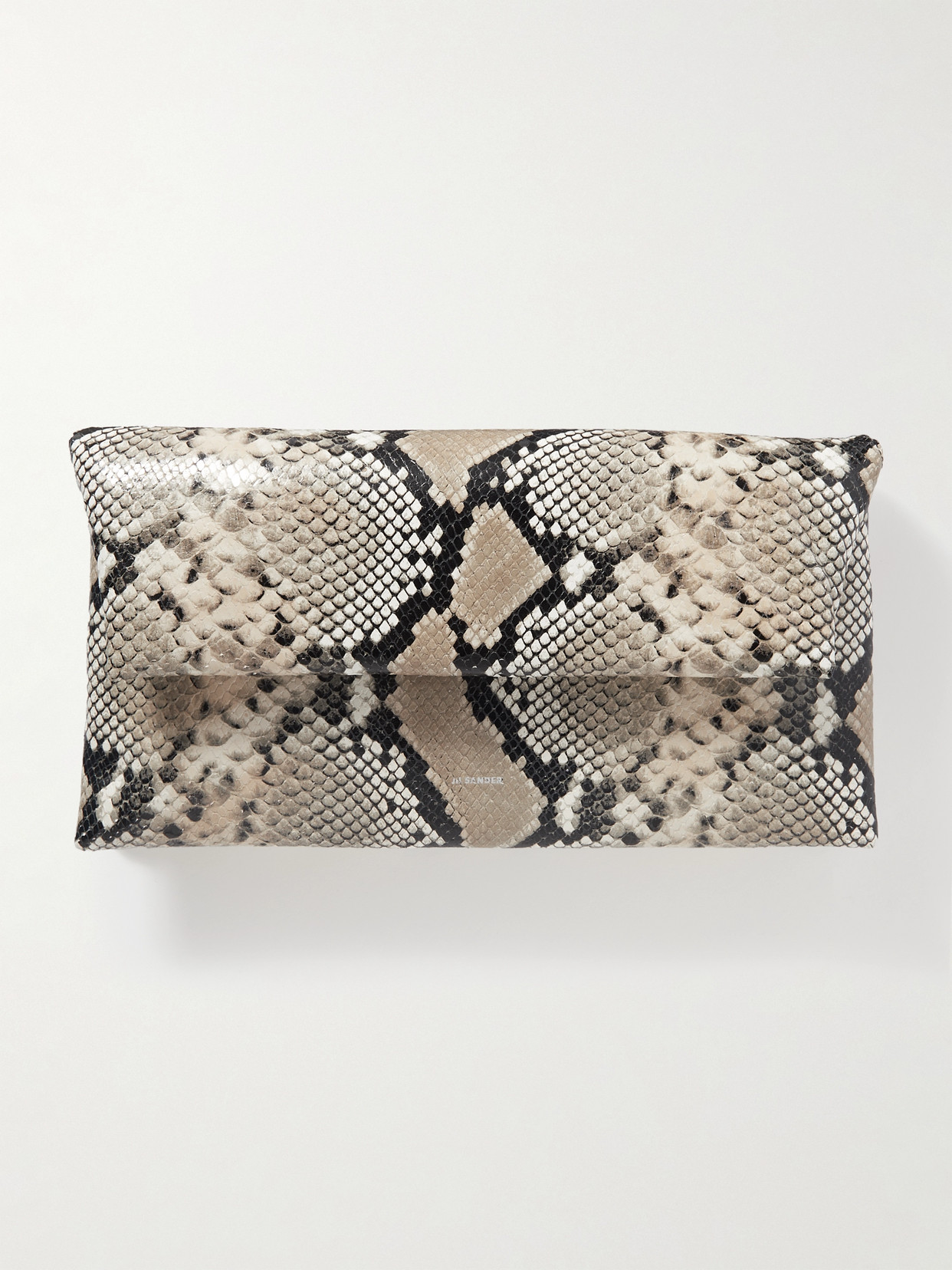 Jil Sander Origami Padded Snake-effect Leather Clutch