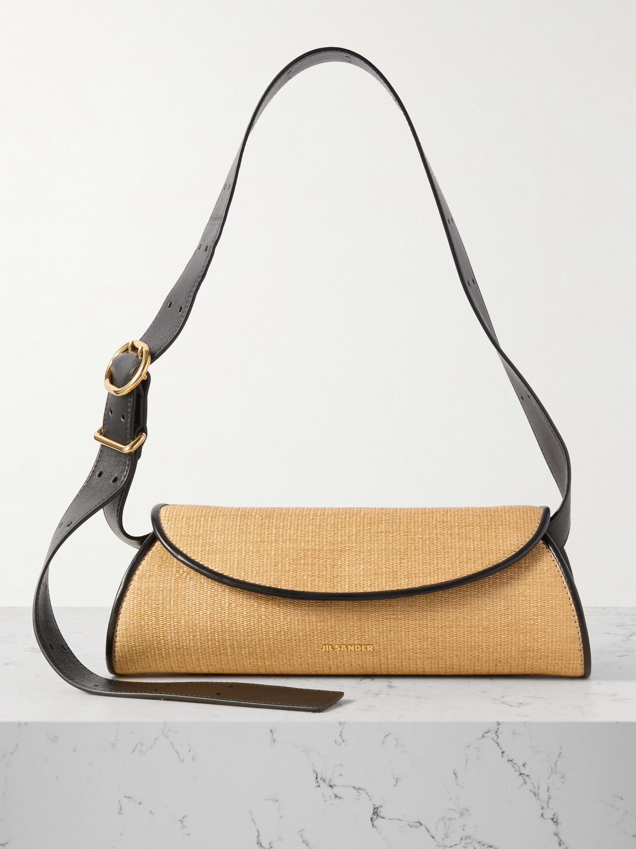 Jil Sander Leather-trimmed Raffia Shoulder Bag