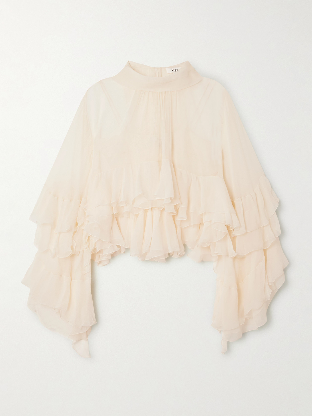 Chloé Ruffled Tiered Silk-mousseline Turtleneck Blouse