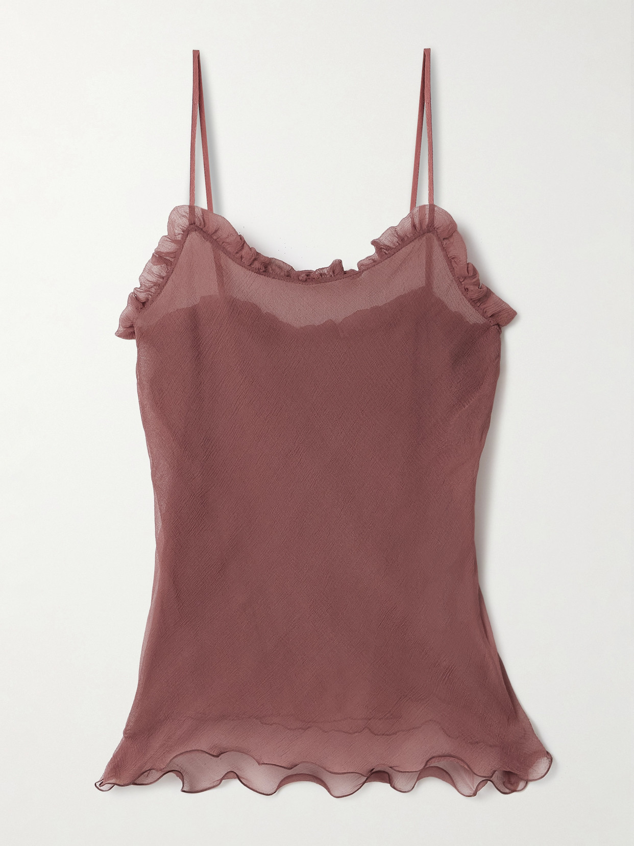 Chloé Cutout Ruffled Silk-crepon Turtleneck Blouse