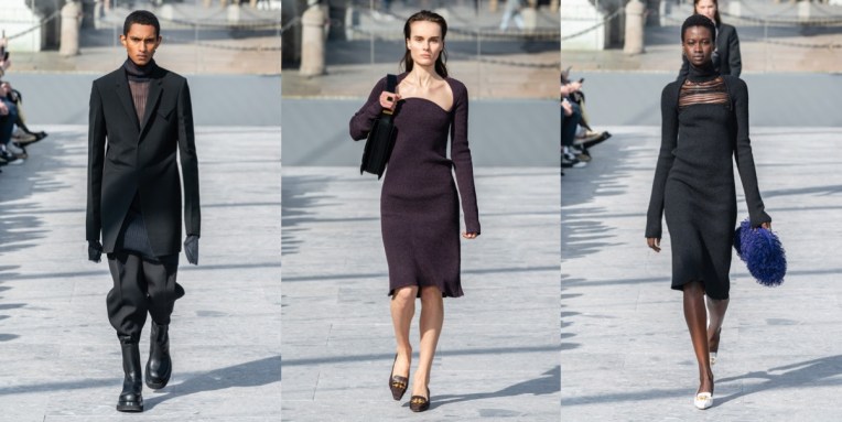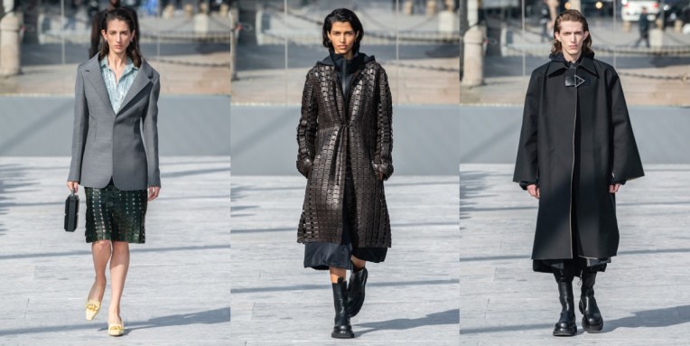 First thing’s first: stop calling Daniel Lee’s Bottega Veneta the ‘new Céline’. Should we really replace Phoebe Philo? Phoebe has her irreplaceable style, which is the ideal balance between femininity, minimalism and artistic quirk. Those who have her clothes, lucky you, cherish and wear them. Let’s all hope she will come back to fashion soon – that’s it. On Lee’s note, yes, he ‘grew up’ creatively in her design studio, but I’m sure he must be already tired with all that loud comparing and the Philophiles-generated pressure of being a Céline replacement. Now it’s his Bottega Veneta, and as his debut runway collection proved, this guy has a mind of his own. I’m saying this right away: his collection didn’t completely ‘wow’ me, at some points it was over-complicated. But that’s fine, because every debut has its ups and downs. The designer focused on leather, because Bottega Veneta has always been a leather brand. While the motocross look felt, simply speaking, like too much leather, accessories were the most compelling part of the collection (the shoes in signature Intrecciato weave are so, so good, just like all the heavy boots, geometrical handbags and fringed clutches, of course in leather). A future Bottega Veneta customer should definitely invest in one of those new classics. A sharp injection of modernity was as well brought to clothes. A square neck dress that opened the collection was sensual, but strong, just like the asymmetric knits (they looked extra on guys) and quilted skirts. But then, some of the coats’ shoulders were a bit too bold and kind of conflicted with all this tender, close-to-body feeling. Good things are coming to Bottega Veneta, let’s just all hope the designer will get the time he needs to fully establish his new language for the brand. And don’t mistake him with Philo.