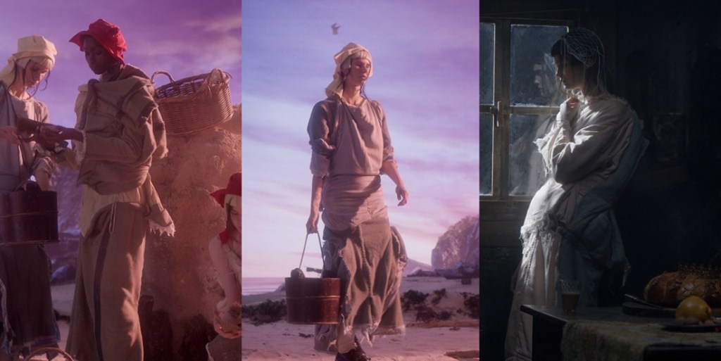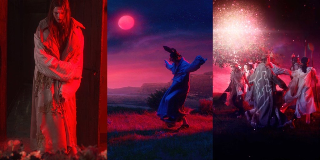 “The idea of how we all felt through this pandemic, and being brought to our knees by the power of mother nature.” That’s a succinct clip from a long conversation with John Galliano about the making of his Maison Margiela Arstisanal collection, which he scripted into the epic film, A Folk Horror Tale, that had its premiere in a Paris cinema this week. The comment seemed emblematic. A romantic, mysteriously troubling struggle with the elements was on Galliano’s mind as he designed and crafted clothes and moving pictures with the French Oscar-winning director-producer Olivier Dahan. “The effect of the weather, the sea, the moon, the elements, started to play on my psychology.” Galliano has been a story-teller, a stream-of-consciousness creator since his very beginnings as a student who made his first historically-inspired French Revolution collection, Les Incroyables, in 1984. Images and self-imagined characters who connect the past with the present have stimulated and preoccupied him for his entire career. In 2021, finally, he’s seized the opportunity to bring those ideas alive through a medium that reaches far beyond the limitations of the catwalk formula. Even the lookbook of his collection breaks with standard conventions. In what is probably the most personal of all the collections he has done for the hand-made Artisanal line – the house equivalent of haute couture – it’s a triumph of emotionally-driven material experimentation. He said it “came out of hours and hours of dialogue” in his studio, giving form to the conversations with the young group of house models – his ‘Muses’ – who take part in his process of making clothes on their bodies; and who eventually act out their meaning.