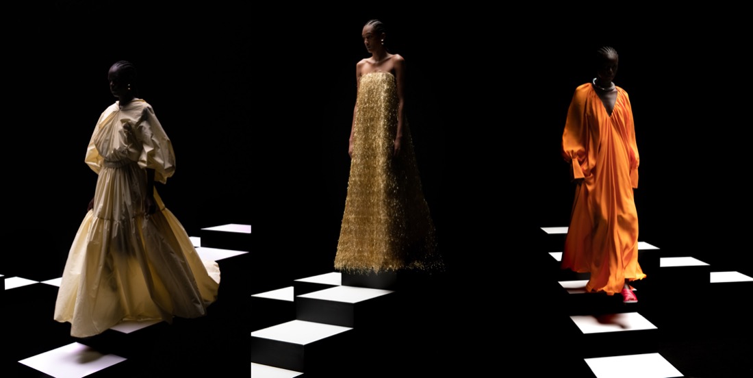 Victor Glemaud‘s brilliant autumn-winter 2022 outing oozed with the energetic New York chic of the Halston days – and the graceful confidence of the Halstonettes. Lately, Glemaud has been working a more minimalist groove, and this season the designer ramped up that aesthetic, stripping down and paring back his signature vibrant knits. Models sauntered into the marble paved atrium in classic stilettos, their hair tied back with chic headscarves. The collection has its key reference – Ousmane Sembène’s Black Girl, a masterpiece of 1960s cinema that earned the pioneering Senegalese filmmaker international renown. Mbissine Thérèse Diop plays the young Senegalese woman who moves to France to work for a wealthy white family. Her stirring performance is amplified by a wardrobe of impeccable black and white shift dresses. Punctuated with touches of tangerine and soft beige, the collection’s mostly monochromatic palette nodded to Diop’s scene-stealing performance. Glemaud introduced a new, more pliant yarn to his brand this season, and the resulting cut and sew jersey dresses were attention grabbing and flattering on a variety of body types. The most compelling examples were cut with athletic attitude, including clingy hooded racerback maxi dresses, ruched asymmetric LBDs, and stirrup leggings. As a partner to those bodycon looks, Glemaud showed a series of fur coats, perhaps the most unexpected aspect of the collection. With so many brands going fur-free, these days it’s rare to see so much as a fur trim on the runway. Still, for Glemaud the choice made sense. “Fur has a rich history in Black culture and it’s something I don’t think we should be ashamed about,” he said backstage. “I also don’t believe we should live in fear of being canceled.” It was a lovely surprise to discover in the show notes that he had dedicated the collection to “the countless women who left their homelands for the American Dream,” including his elegantly dressed mother and her twin sister, originally from Haiti, who sat in the front row. “I wanted this collection to be a celebration of body and shape, but most of all a celebration of Black women,” said Glemaud. Easily the most powerful statement of the show was the casting of all Black dark-skinned beauties.