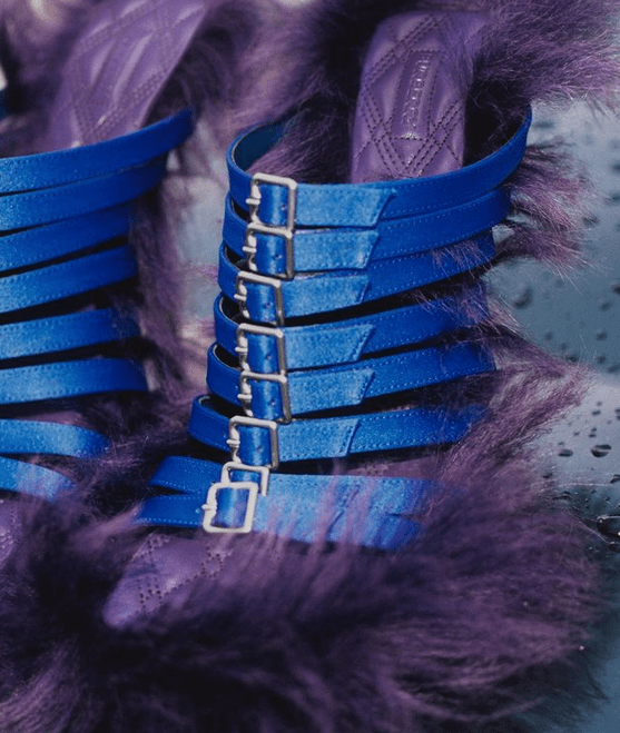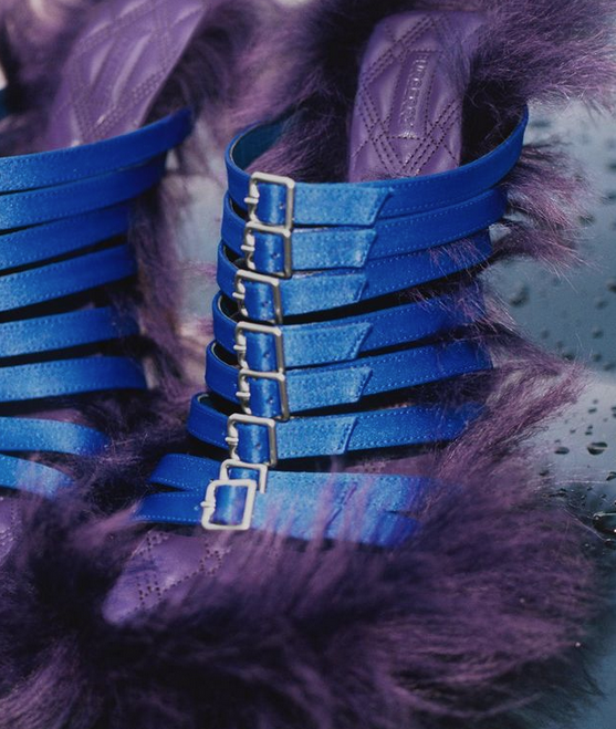 The capacious bags and panniers are fastened with clip-ons in the shape of a “B” (like Burberry), and are decorated with dangling tails of faux fur. This kind of English eccentricity is something Lee plans to develop in his collections in future seasons. Instead of a banal logo with the brand’s name, Lee promotes a somewhat forgotten but iconic Burberry symbol: a medieval knight on horseback. The emblem appeared on white dresses as well as over-size scarves. The brand’s new “flagship” color is also an interesting treatment. It’s all about the shade of deep, vivid blue. After the success of the memorable green colour with which Lee won the hearts of Bottega Veneta customers, will the “Burberry Blue” color become a new hit? Time will tell.