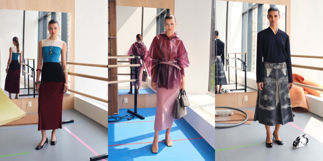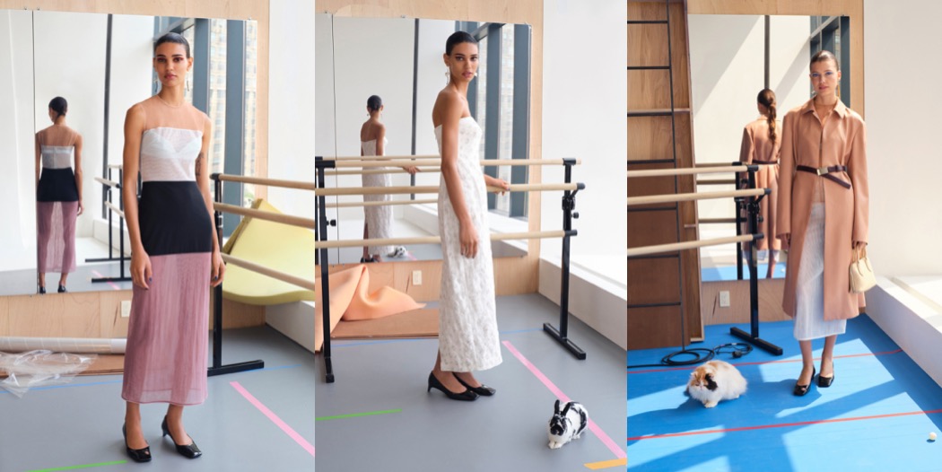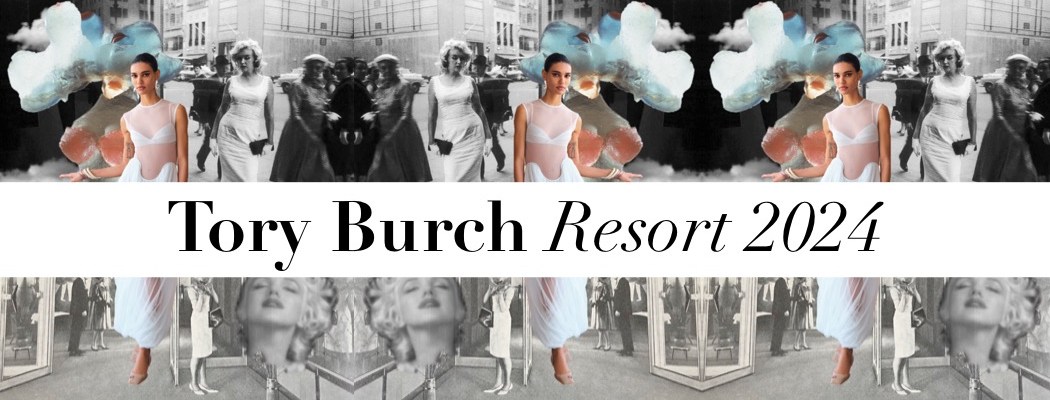 Tory Burch herself is always in motion, which might be why she’s been leaning into stretch fabrics and lean, almost athletic shapes recently. Last September at her brilliant spring show she introduced a modular concept that combined a stretch top and tube skirt with capri-length leggings, or teamed a stretch top and a part-opaque, part-sheer skirt. For resort, there’s a pair of dresses that recreate the color-blocking of those looks – same big impact but in a couldn’t-be-easier all-in-one shape. The deep-V sweaters accompanied by sheer turtleneck dickeys here do the same thing: you get the look of layers in one completist piece. “I wanted clean lines,” Burch said of the latest offering. That translated to aerodynamic jersey tees and narrow skirts shown in monochrome white or navy blue punctuated only with a studded hip-slung belt, or to a leather handkerchief top embellished with more of those silver studs paired with mannish, straight-cut trousers. The tailoring is minimal and stripped of any visible hardware. Minimal but sensual is the message behind a trio of special dresses that take their cues from ballerina’s tutus. Combining a stretch tulle bodice with a fluid skirt draped from curved underwire, they don’t cling to the body but rather seem to float on top of it. Pairing them with skimmer flats, Burch seemed to be returning to a point she’s been driving home for a couple of years now, that for this designer comfort and glamour are inextricably intertwined.