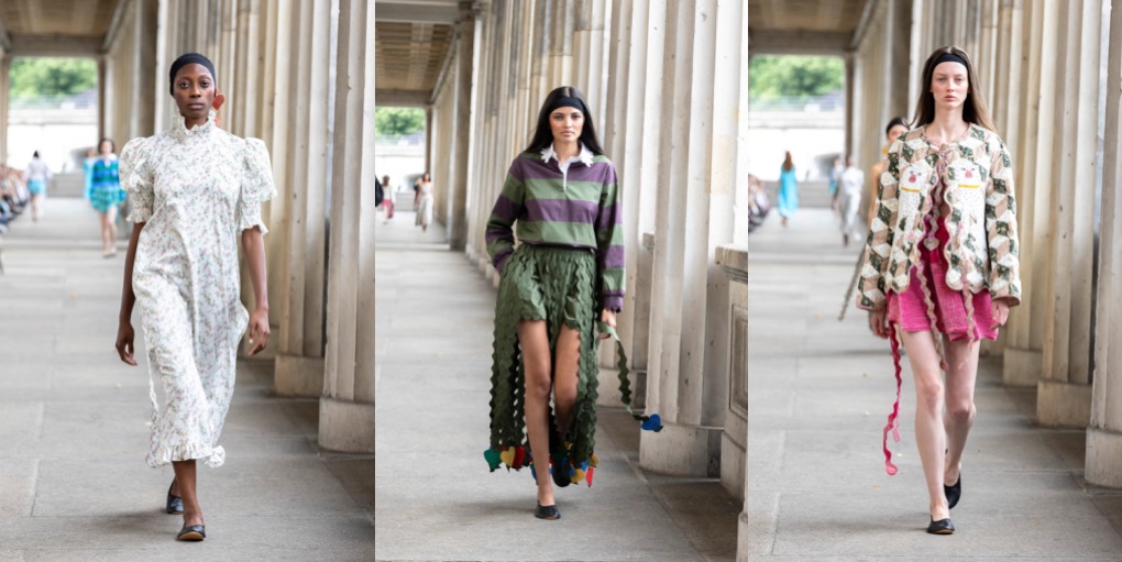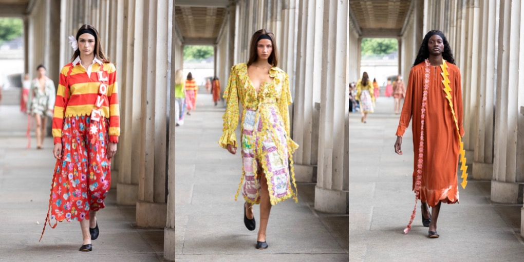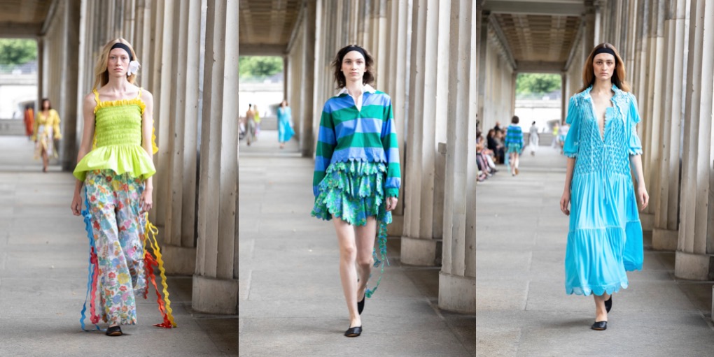 Munich-based Horror Vacui started out in 2012 as a brand selling vibrant sleeping gowns (for day and night), airy tops and oversized shirt-dresses in patterned silks and crisp Egyptian cottons. More than a decade in the business, the brand now offers an entire wardrobe, aesthetically rooted in Anna Heinrichs‘ vintage obsessions. Her spring-summer 2025 collection, shown during Berlin Fashion Week, is dedicated to all aspects of love, especially that of her mother and father who have both passed away within a year. The show opened with two looks in all-over black, which is an absolute rarity in the colorful world of the label. But the designs that followed made it clear that the beauty of her parents’ story was the focus rather than mourning. Translated from Latin, Horror Vacui describes a fear of emptiness, however this 10th anniversary collection was not barren or deflated, but full of love. The craftsmanship of Heinrichs’s honeycomb smocking, Froschgoscherl pleating, and the brand’s signature wavy trims are stunning. These are arts that have been passed down through generations and, too, are bound together by love. The designer upheld her sustainable approach to the collection, which, as always, was produced exclusively with Liberty of London fabrics, only this season she only used remnants from the last 10 years. One quilted patchwork design was even made from 100 different fabrics. When asked whether the numerous hearts running through many of the designs were not too obvious for such a conceptual collection, Heinrichs replied: “Yes, it’s quite naive. But that’s me. I like it when people smile. I don’t want to be cool, I want my fashion to evoke memories. Be they of family members, your own childhood, or just a beautiful moment in life.”