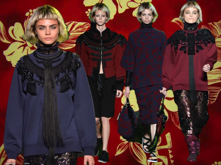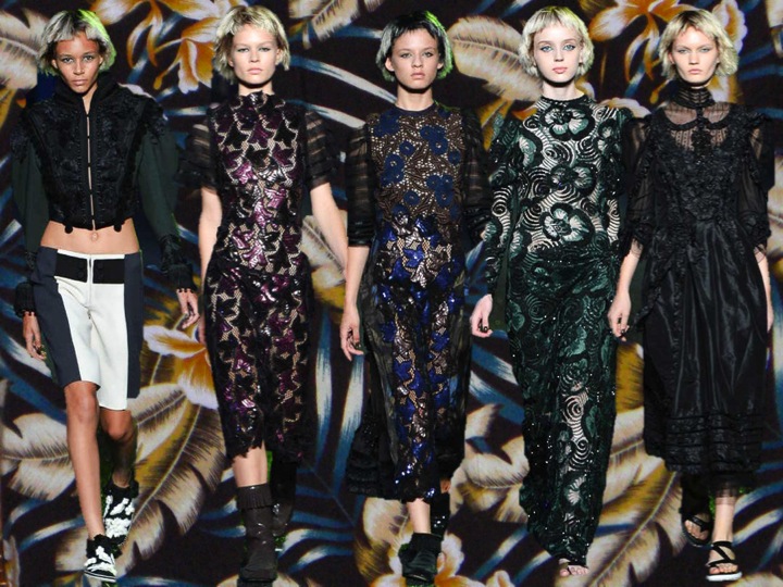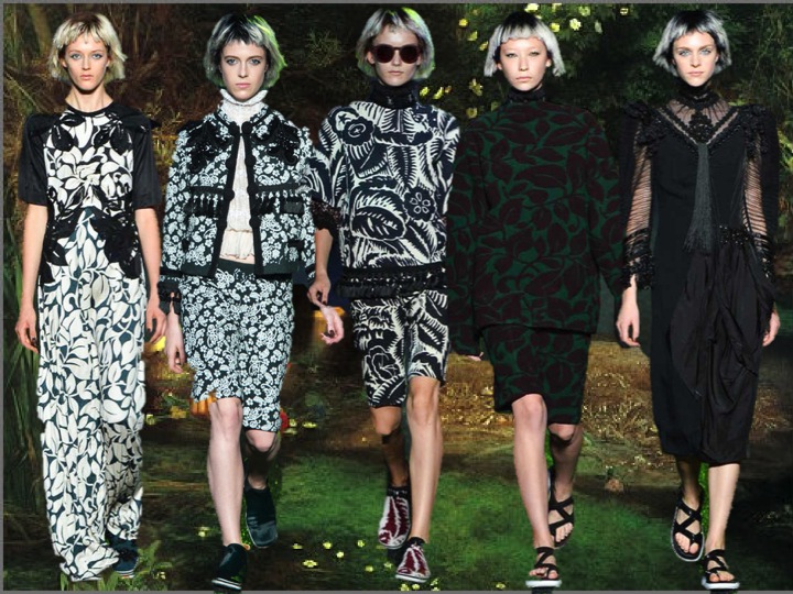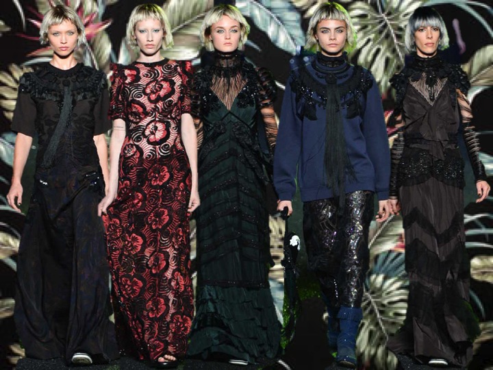 “It’s more of a weird frat party, Burning Man, shores-of-Gotham City sort of beach scene. It’s a lovely nightmare, or it was for me anyway.” And this, more interestingly: “I didn’t want the cliché of Spring and Summer, I wanted it to be about girls who have no problem coming to work in a Victorian gown and Birkenstocks” said Marc Jacobs about his SS14 collection that with grace closed the New York Fashion Week. The venue was amazing- a huge, huge place, that reminded of something like a beach apocalypse- beach chairs, towels, sand, trees, cigarettes were lying in chaos everywhere. The models (the set of them was really impressive) were for example Cara Delevigne who flew straight from London through Atlantic to walk the runway for Marc and comeback on London Fashion Week… Sky Ferreira (!!!), Edie Campbell, Lily Mcmenamy, Georgia May Jagger and Hanne Gaby were also here. Coming back to collection, Marc Jacobs broke all the rules of the SS14 but in a good way- when everybody were into pure minimalism and pale clothes, MJ slapped it, with a print, embroidery and colour bomb- in a much darker colour than I expected. The clothes were inpired with Victorian era, widow weeds and some 21st century- birkenstocks again rocked the runway just like funny backpack totes! Definitely, that was one of these “weird” parties I would love to come…