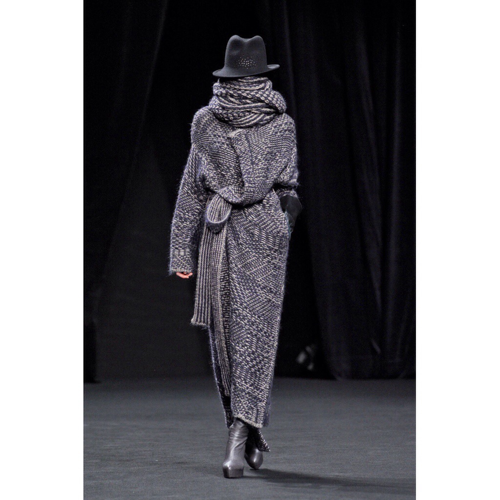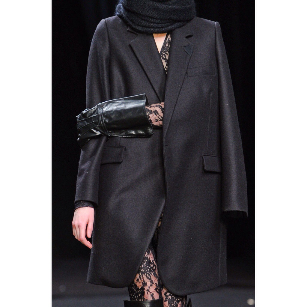 Violent Darkness. The make-up faux scars on the faces. The winter guys from Yohji Yamamoto are not the ones you want to mess up with. That was a very classical collection courtesy of Yamamoto – “black says it all: don’t bother me, I don’t bother you” is the most famous quote and motto the designer cultivates each year. Black blazers, black pants, black shirts. Poetic, mysterious. And aggressive thanks to the imprint of fighting on model’s faces. Except the darkness, Yohji showed gleaming velvet suits with marble prints to make all more philosophical.