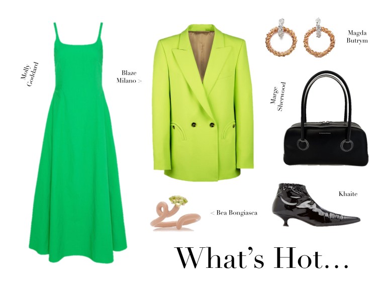 What’s Hot (25.1.26) January 25, 2026 | Design & Culture by Ed GET THE LOOK: BLAZÉ Milano Jealousy Cotton-velvet Jacket AGOLDE Delphi Ribbed Jersey Top Magda Butrym Lace-trimmed Silk-satin Midi Skirt Ancient Greek Sandals The Slipper Satin Mules Aspinal of London Pure Cashmere Scarf in Cardinal Red The Row Leather Clutch