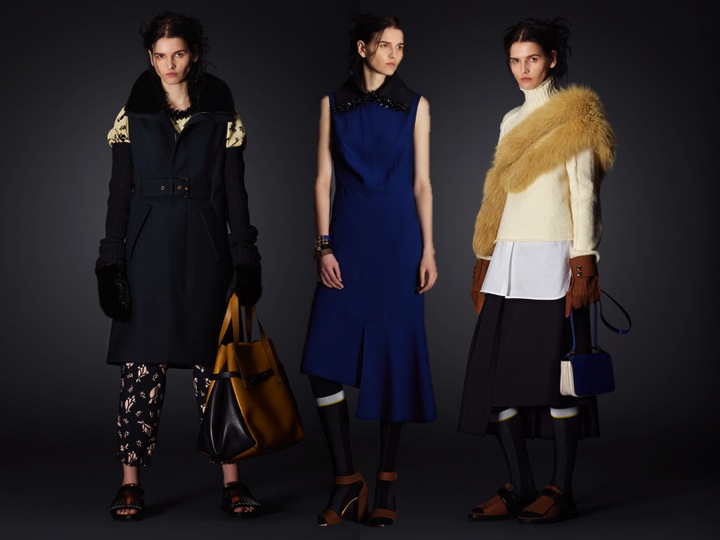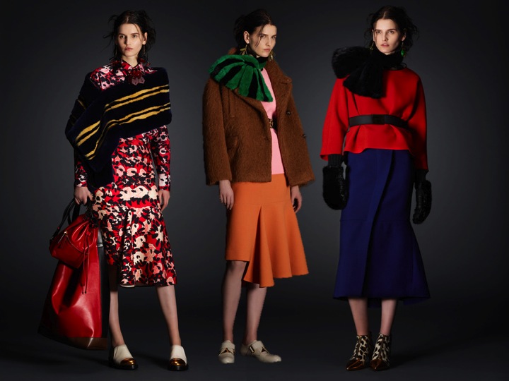 Marni’s designer, Consuelo Marni, makes a renaissance movement for this label. Seriously, the last few seasons are really good. And this Pre-Fall’14 is even better! Having a bit of Prada feel in it (note those fur stoles and shoes!), the collection is warm, boheme and cool at the same time. Like a gypsy, the model wears not matchy prints with over-sized coats, socks, heels, scarves and huge bags, looking fresh and really stylish. Marni does clothes for the “I don’t know what to wear, so I will wear something” days, and I love it. What do you think of this vibrant, colourful style?
