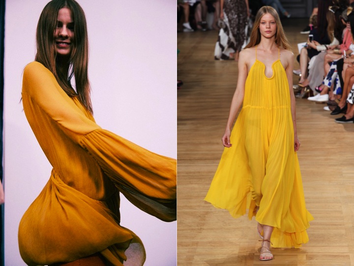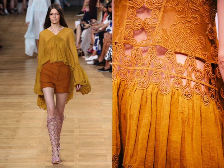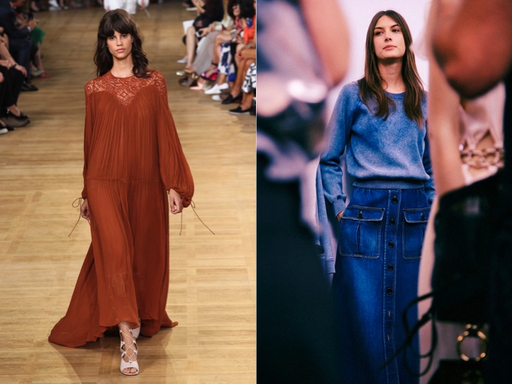 Gaby Aghion, the creator of Chloe, passed away one day before the SS15 show. And the summer collection is dedicated to her big role in French fashion. It just couldn’t be more french- by happenstance, the designer Clare Waight Keller sent out a collection that is the closest she has come yet to capturing Chloé’s free spirit. It may now be a label for international – rather than specifically French – young women, but the British-born designer has reached a point where everything is working well. The clothes had loosened up. A lot of the inspiration seemed like hippie-de-luxe from the Seventies – a trend for Summer 2015. But the high quality of a fresh, full-sleeved white shirt worn with tailored shorts, or a shorts outfit in saffron and rust suede, put Chloé in a class all its own. The denim here looked designer-worthy – especially a skirt with the denim-blue dyed into a sweater. And what the designer called her minimum and maximum looks – billowing long dresses and short ones – created a nice balance. Surely one of the strongest Chloe collection up to date.