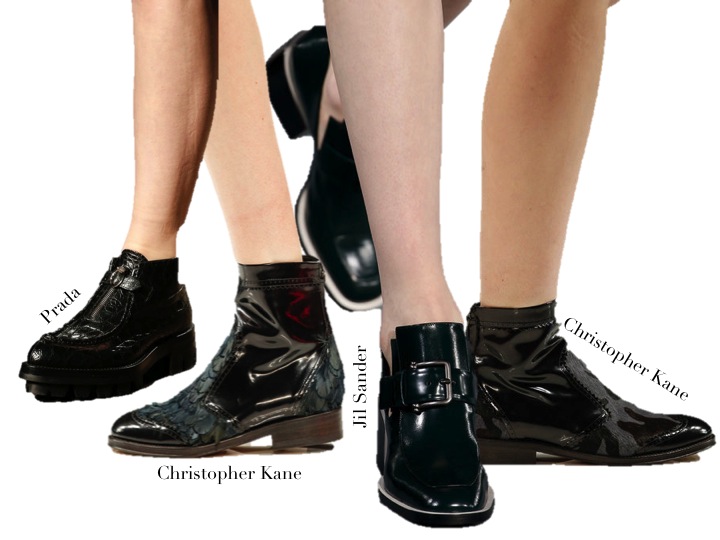 London designers are just in love with them. Erdem, Christopher Kane, J.W. Anderson. All of them had boots in their collections. BUT. At Kane, the Chelsea boots were covered with feathers (not so ugly then), at Erdem with crystals (might say even beautiful, and J.W. Anderson’s were so ugly, they were simply beautiful. Yes this is a strange world of Anderson. But why mostly London designers used this type of footwear? Cheaper to make? More commercial? Or just a case of inpiration? In fact, you can wear boots everytime and everwhere. They will make it great with a slim dress or with a mohair striped SL sweater and leather leggins. Or even with a Louis Vuitton boudoir inspired lace dress (that would be a cool hard core on street style in Paris!). In other words, the Wrong Shoes as many people call, are the new IT shoes of the season, and maybe of the decade.