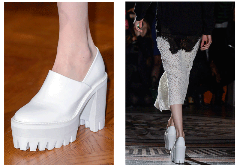 But this season is the most Punk’d as you can see, filtering magazines and Instagram. So no wonder why boots are killing the high heels that are just so last season! While I pretty like this shoe trend, it feels kind of rebellious and free spirited. In these shoes you will conquer your shoes. As Stella McCartney says “We’re allowed to have inner strenght and it takes that to wear those shoes”. Her collection was like a gender mix- a man shirt that was very long, making it a dress, feels a bit Marc Jacobs, but on women looks great. Laces mixed with smokings looked very modern and surely gives a inner power to every wearing it fashionista. But, these strange shoes might be very romantic, as says Miuccia Prada. True. They looked very sexy accompanied with the dresses and wet hair of models… But what makes a bit suprised, that mostly woman used this “forbidden” trend. Well, except Hedi Slimane and Karl Lagerfeld. But that’s a totally other story to tell. I mean, they are also boots, but boots designed by men this season are beautiful- full of decorations, chains. As I said on the beginning, giving example of Tom Ford, men don’t really like seeing women in these chuncky shoes. It’s better when it is high, hurty and sexy!