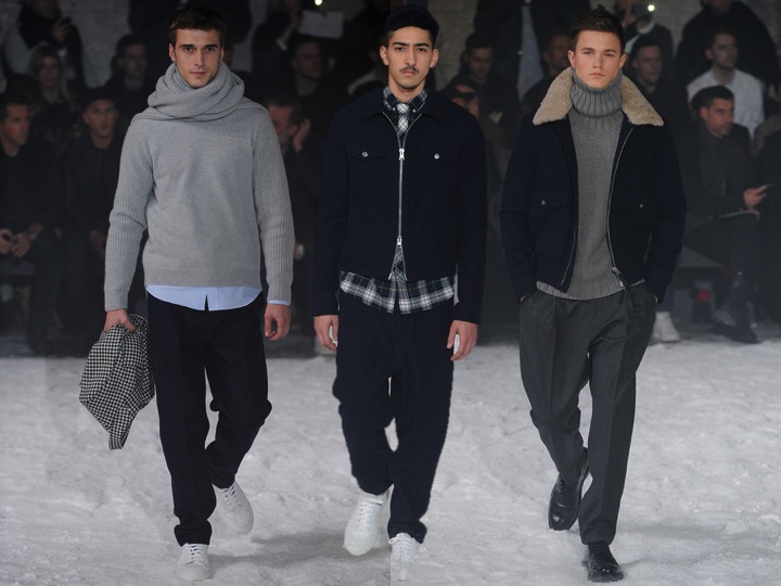 AMI is the moment’s hottest label coming from Paris- it’s aim is to bring cool Parisian chic back to men’s wardrobe. As it’s their first runway collection (the venue was a snowy park), it was really buzzy. And not only because of the guest model, Caroline de Maigret, who wore a tuxedo in super chic way. The collection itself was fantastic, full of vibrant red colour and comfortable pieces that every men ought to have. My favourite- the totally camel look. This is a perfection.