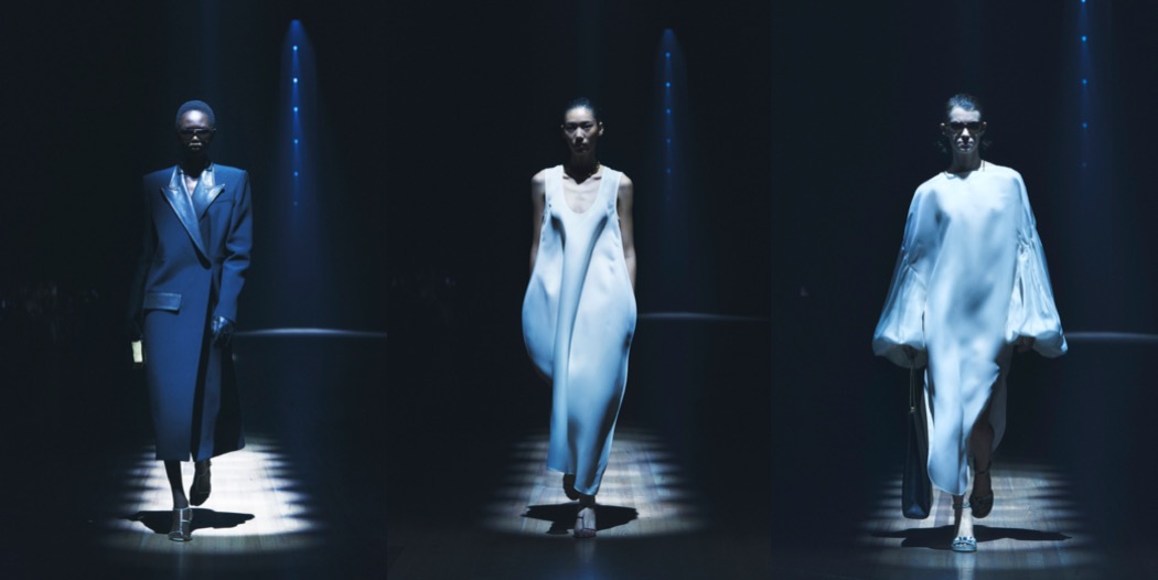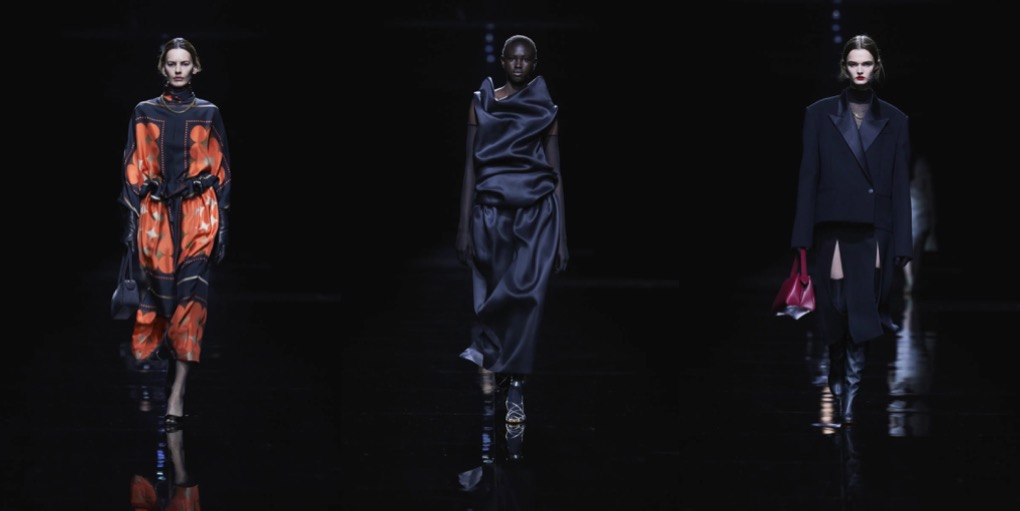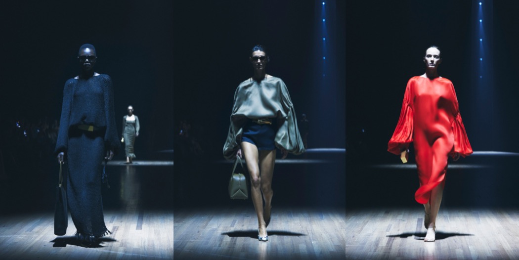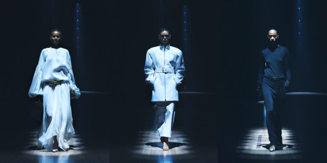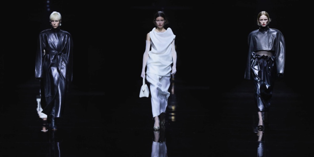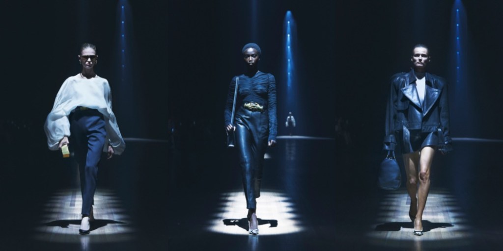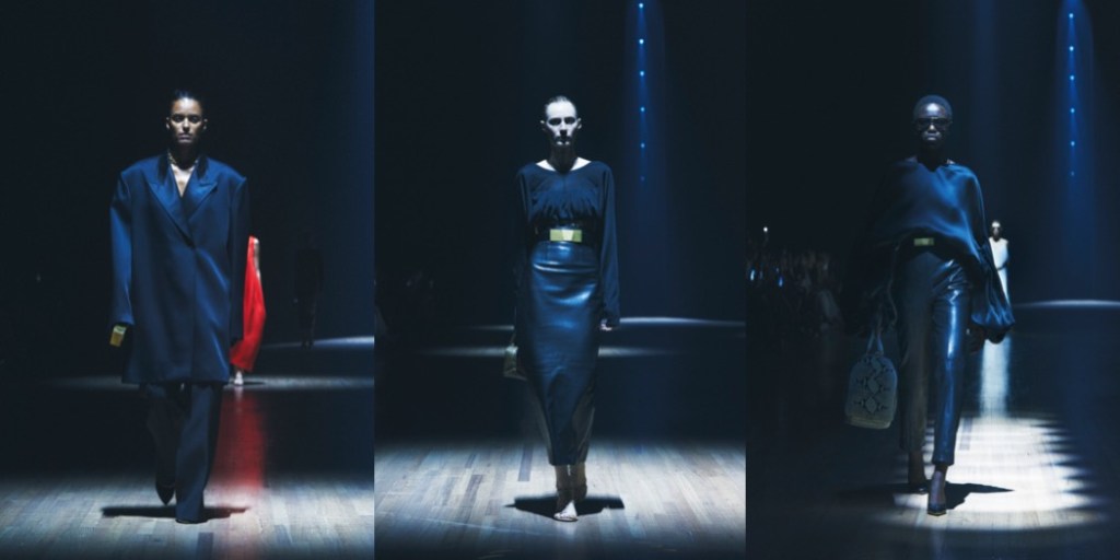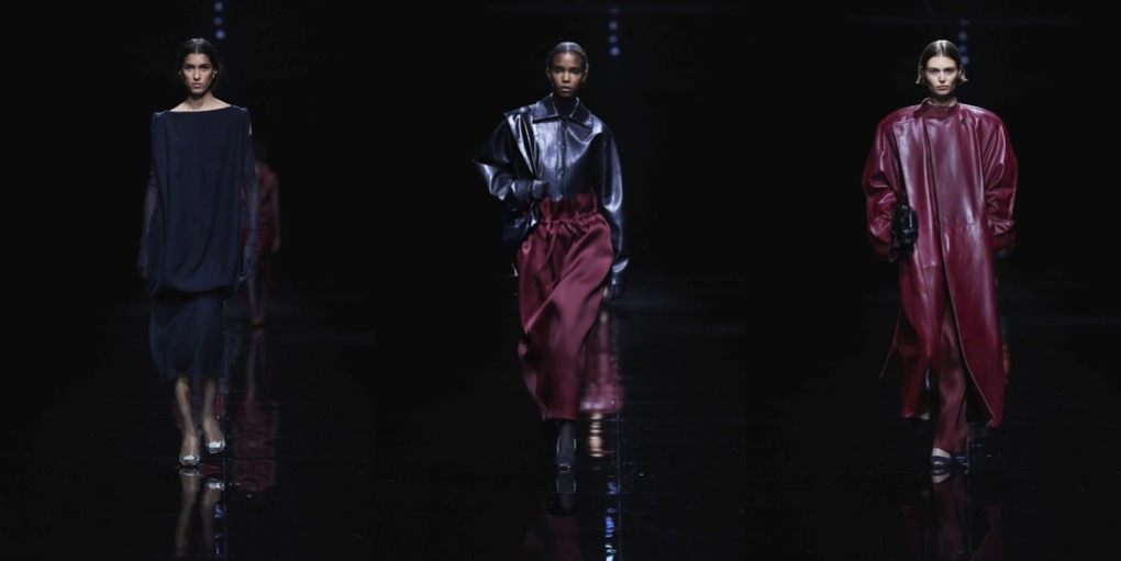 Another season, another Khaite fashion show presented in total darkness. I understand Catherine Holstein likes a mysterious mood, but again, the clothes are barely visible, and the models looked, as Rachel Tashjian wrote in her on-point review, disempowered. The collection had two main running themes: the leathers and the billow-y silhouettes. The bulky shapes of Khaite coats and jackets, with their exaggerated Claude Montana-ish shoulders, generous cowl necklines, and full sleeves evoked the late ’80s and early ’90s, when Holstein would’ve been a young child playing in her mom’s closet. However it was the designer’s newly-found obsession of draping silk gazar the ultimate highlight of this collection. One sculptural top was originally meant to be a dress, but as the model slid into it at the fitting and lifted its hem to put on shoes, Holstein preferred the curving volumes of it bunched up at her hips, and it was reworked at the last minute. “I want women to feel exhilarated when they put on my clothes,” she said. If only that exhilaration was more perceivable in the dead-serious format the Khaite shows are taking.