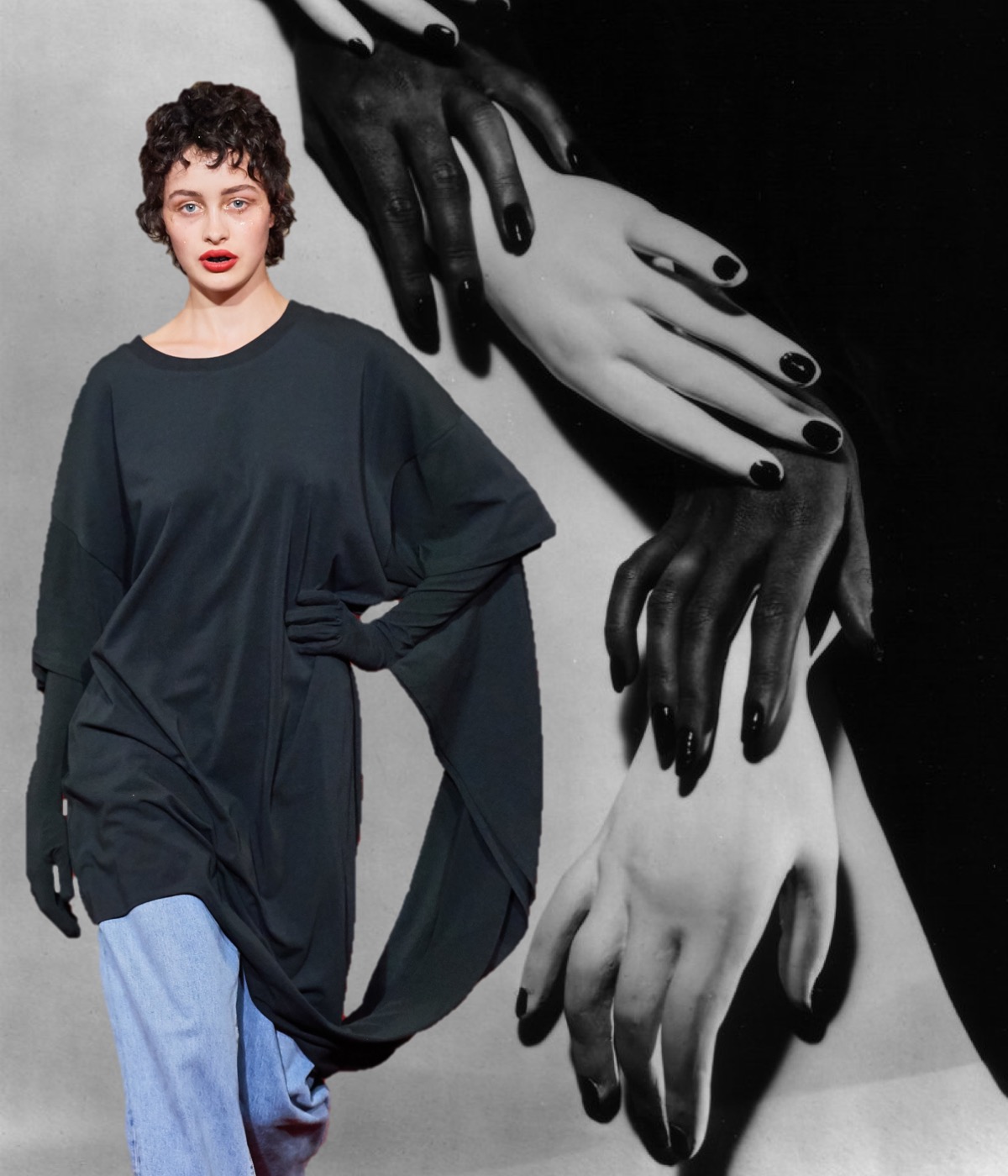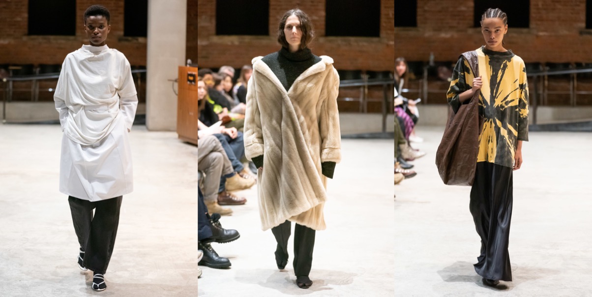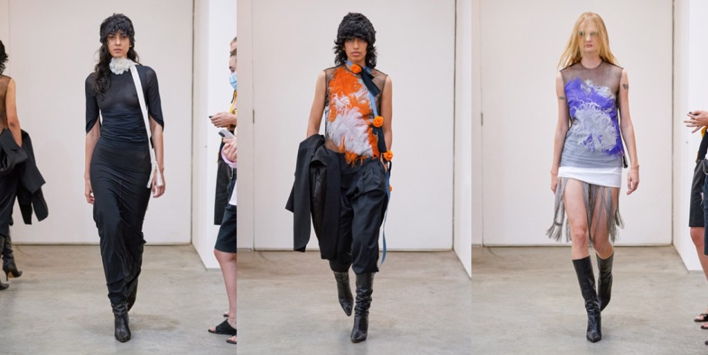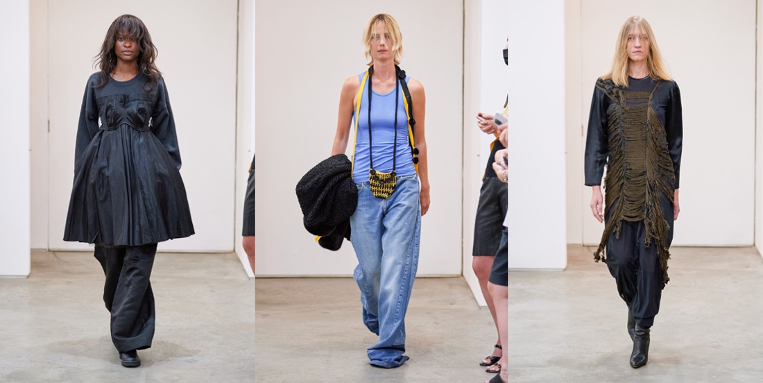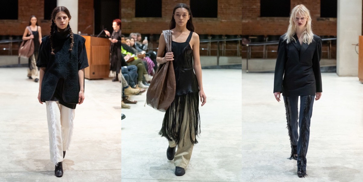 CDLM keeps on being a fascinating enigma. You can’t quite categorize or entirely put your finger on this New York-based brand, but with every season it gets just better… and even more elusive. Chris Peters‘ process behind the autumn-winter 2024 collection is rooted in his newly found love for meditation practice. “I never really understood what meditation did, but it’s given me such a sense of who I am and being really present in the moment,” he said. “On top of that, it made me feel more a part of the universe than I ever have; I feel more complete in the way that I live and the way that I act and the way I make things. A lot of the clothing is sort of an extension of this process that’s given me the confidence and clarity to execute ideas that would’ve been a little overwhelming or kind of scary previously.” Taking his words literally, there was indeed a sense of interconnectedness evident in this collection. A vintage fur stole that used to belong to Peters’s grandmother was attached to a bunch of vintage cotton t-shirts to create a snood of sorts that could work as both a top and an accessory. Elsewhere, a simple jersey tank had an undulating cutout across the rib cage and was shown over a vintage embroidered gown that was draped over the shoulder, its bottom half pulled through the slit. The designer has always been fond of exploring the full physicality of his materials and the possibilities of “wearing” something, but such experiments are never at the expense of beauty or desirability. For instance, take the long jersey t-shirt dress worn with the wide waistband of a pair of white wide legged trousers. Its ease gave way to an unimpeachable elegance. Elegance, in fact, may be the best word for Peters’s latest offering. It was certainly there in the white lace dress put together with pieces of intricately beaded fabric in gradient shades of gray to white. “I would say this piece is definitely representative of this collection,” he noted, describing the process of making it, which included taking apart a beaded jacket (that also used to belong to his grandmother), and re-working and re-beading parts of it, as a meditation in itself.