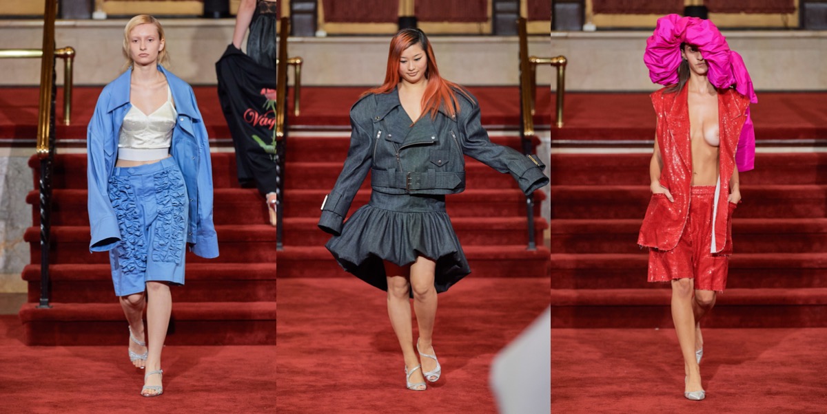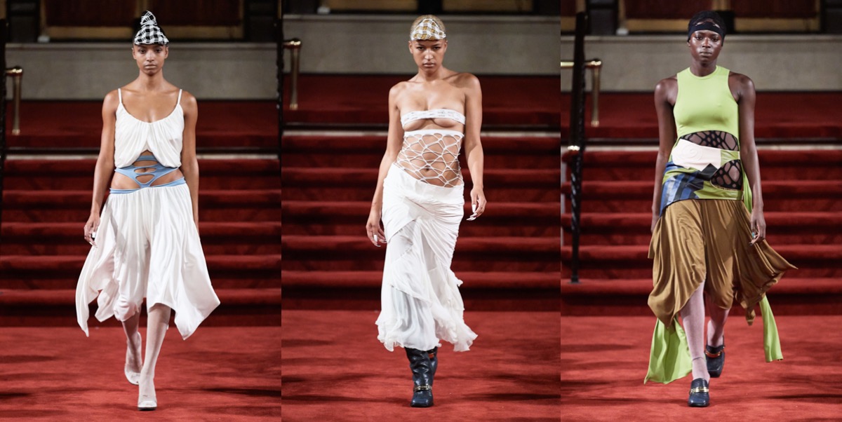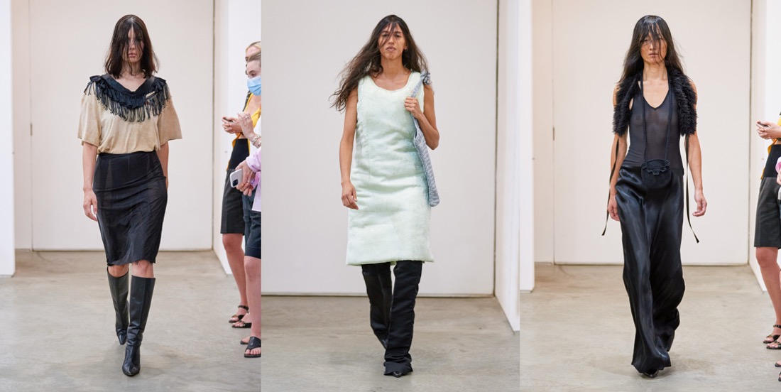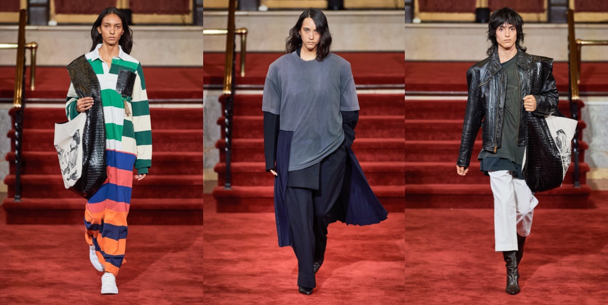 CDLM keeps on being a fascinating enigma. You can’t quite categorize or entirely put your finger on this New York-based brand, but with every season it gets just better… and even more elusive. Chris Peters‘ process behind the autumn-winter 2024 collection is rooted in his newly found love for meditation practice. “I never really understood what meditation did, but it’s given me such a sense of who I am and being really present in the moment,” he said. “On top of that, it made me feel more a part of the universe than I ever have; I feel more complete in the way that I live and the way that I act and the way I make things. A lot of the clothing is sort of an extension of this process that’s given me the confidence and clarity to execute ideas that would’ve been a little overwhelming or kind of scary previously.” Taking his words literally, there was indeed a sense of interconnectedness evident in this collection. A vintage fur stole that used to belong to Peters’s grandmother was attached to a bunch of vintage cotton t-shirts to create a snood of sorts that could work as both a top and an accessory. Elsewhere, a simple jersey tank had an undulating cutout across the rib cage and was shown over a vintage embroidered gown that was draped over the shoulder, its bottom half pulled through the slit. The designer has always been fond of exploring the full physicality of his materials and the possibilities of “wearing” something, but such experiments are never at the expense of beauty or desirability. For instance, take the long jersey t-shirt dress worn with the wide waistband of a pair of white wide legged trousers. Its ease gave way to an unimpeachable elegance. Elegance, in fact, may be the best word for Peters’s latest offering. It was certainly there in the white lace dress put together with pieces of intricately beaded fabric in gradient shades of gray to white. “I would say this piece is definitely representative of this collection,” he noted, describing the process of making it, which included taking apart a beaded jacket (that also used to belong to his grandmother), and re-working and re-beading parts of it, as a meditation in itself.