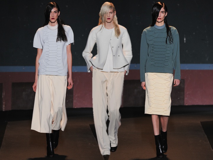 That was pretty unexpected from that eponymous, known for colour-blocking, label. Cedric Charlier took us into his darker side within the AW14 collection- dark, gloomy hair that looks perfect with all these clothes: simple coats, beige dresses, fur jackets and detailed top look like a good match. Although I didn’t understand this grey jumpsuit that isn’t a jumpsuit, I definitely love most the creme midi skirt with that structured top- it’s great for a everyday routine and a night out. Charlier not only hits the on-line stores, but also emerges into important Parisian designer- so better keep an eye on him!
