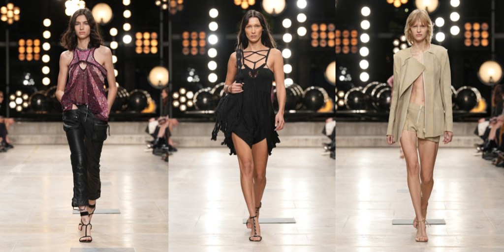 Somehow this season, you really see the difference between how men design for women, and how women design for women. Take Anthony Vaccarello’s Saint Laurent where the all-sheer dresses impose unreal standards. And now look at Chemena Kamali‘s Chloé debut, where ease, frivolity, chic, and joy interweave, opening up a new, very promising chapter at the brand. The authentic stir of enthusiasm among female front-rowers of the show were the first sign that Chemena’s has is to make Chloé really, really cool again. Kamali knows the history of the brand inside out, and worked there as a Chloé-obsessed junior designer in the noughties under Phoebe Philo’s creative direction, and then again under Clare Waight Keller. Nobody knows better than Kamali the spontaneous feeling of it-ness that belongs to the female-centric Chloé philosophy; a power recharged through so many generations since the house was founded in the 1950s by the Jewish-Egyptian emigré Gaby Aghion as a free-spirited ready-to-wear antidote to Parisian haute couture. Kamali called autumn-winter 2024 fittingly, as the “Intuition” collection. “You know, it’s how it makes you feel and how you want to feel,” she said. “I think there’s this connection where today as a woman you need to be able to follow your intuition and be yourself. It’s very much about an intuitive way of dressing, about lightness, movement, fluidity and emotion. I also, love the power of nostalgia; where you go backwards, you go forwards – you also think of today and what women want to wear now.” The collection was triumphant remix of all things Chloé stands for. Karl Lagerfeld’s 1970s time at the brand was referenced by brilliant white scalloped-edged blouse and swirling musketeer capes, modernized with cool boot-cut flares and kitten-heel clogs. Then, we had splendid iterations of bracelet-bags and platform sandals that were Chloé’s bread-and-butter during Philo’s reign. Bananas and pineapples (redone as gilt jewelry) were nods to Stella McCartney’s tongue-in-cheek time at the house. What felt very Chemena was the ease with which she remixed the brand’s codes, and how she single-handedly gave rebirth to the style of the both real and fictional 2000s It-girls: Sienna Miller, Serena Van Der Woodsen, Kate Moss, the Olsen twins. Finally, huge lived-in bags, platform clogs, sexy denims, lingerie dresses are back, baby.