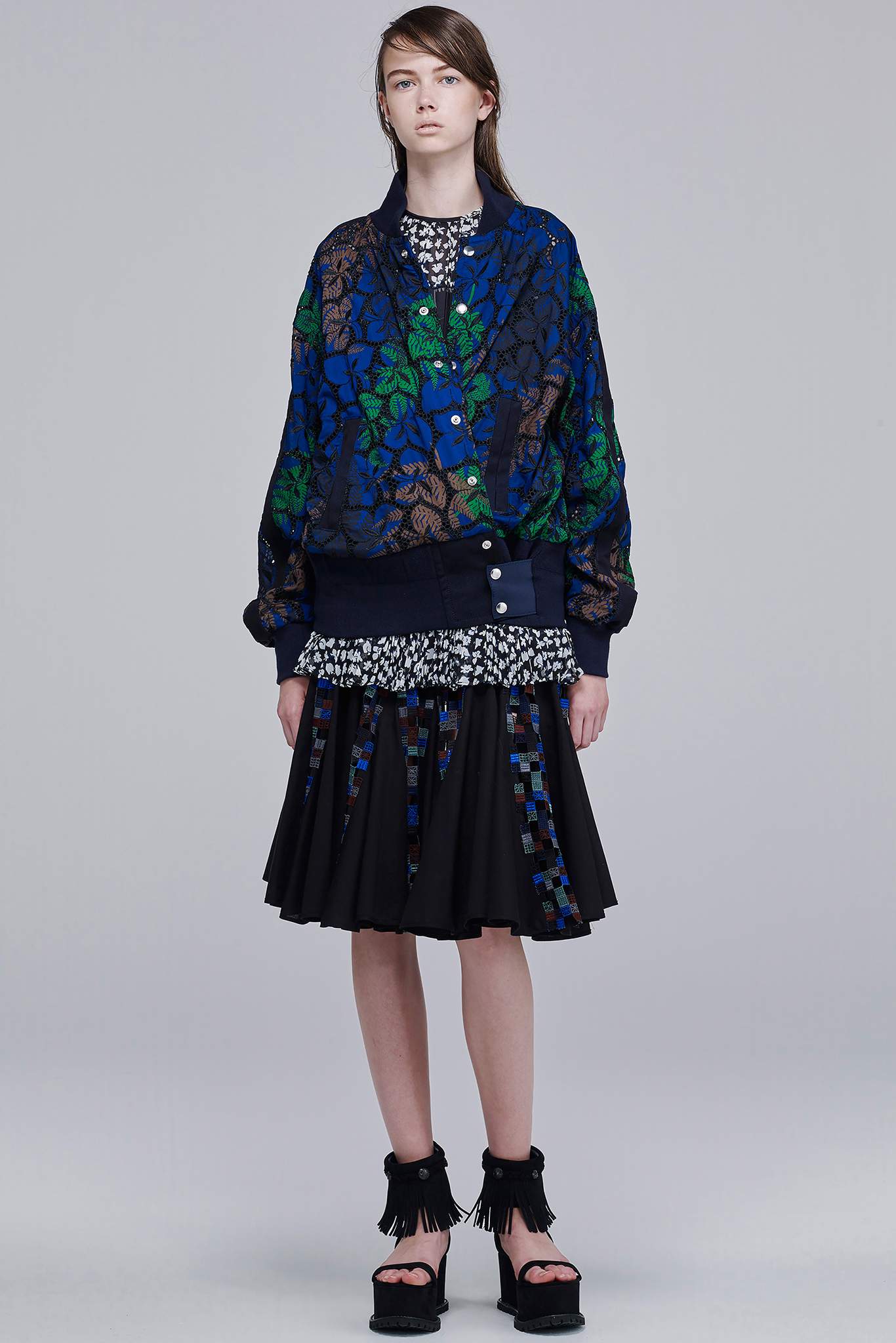 Over-sized yoga pants. Masterful layering. Smart fabric usage. This is what Chitose Abe of Sacai offers us for Resort 2016. Volumes, which remained fearless in the matter of sweaters and dresses, is as always a signature of this Japanese brand. In addition to all the familiar A-line variations and balloon-bomber jackets, Chitose explored longer lengths in this collection, whether with modern-day transparency or in the same manner as her chic collars. This new, easy softness will not go unnoticed among those who admire but feel overwhelmed by Sacai’s unusual, but comfortable silhouette. A great collection with great clothes – and with great styling.