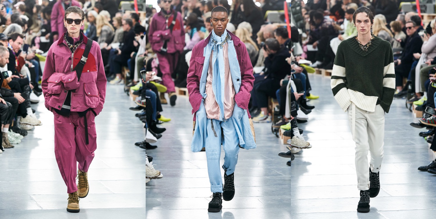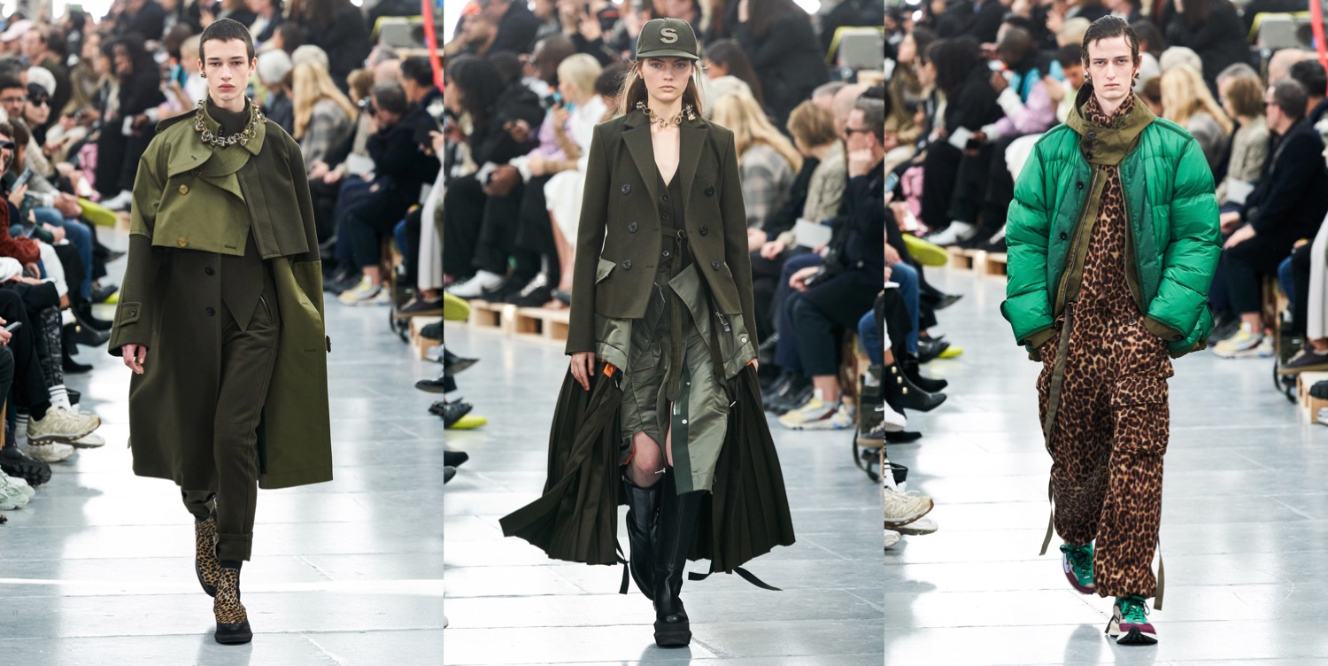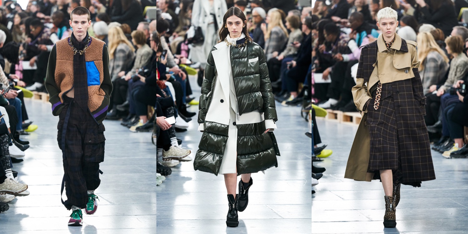 Chitose Abe doesn’t have a formula for her signature hybrids; it’s mainly intuition, she insisted after her autumn-winter 2020 men’s Sacai show (and women’s pre-fall 2020 presentation). It turns out that the man who invented what is arguably the world’s most famous and universal formula, E=mc², was also a big believer in intuition, so Abe made his words her latest motto (and the line-up’s t-shirt that will sell like hot buns). Saca and Einstein is a genius remix. Backstage, she was wearing a T-shirt that read “common sense is the collection of prejudices acquired by age 18” – a quote commonly attributed to him. In her work, Chitose allows an arbitrary inspiration to motivate a shift in layers and volumes or a shakeup in color or pattern; but you don’t get the sense she sets out to radically alter her repertoire. Instead, she experiments, innovates and taps into a topical subject or feeling. This began with women’s looks consisting of suit jackets counterintuitively worn atop military layers that gave way to a fluid skirt and punk-ish platform boots. The men’s outfits included a few Mod-inflected ensembles, sweaters that unzipped up the torso and total looks in pink that corresponded to the romantic spirit of the season. Across both collections, the usual toggling of utility and fluidity played out in animal spots and cosmic-themed bandana sketches by the tattoo artist Dr. Woo. Elsewhere, Abe relied on denim, tweed, tartan, and fleece. A goodie!