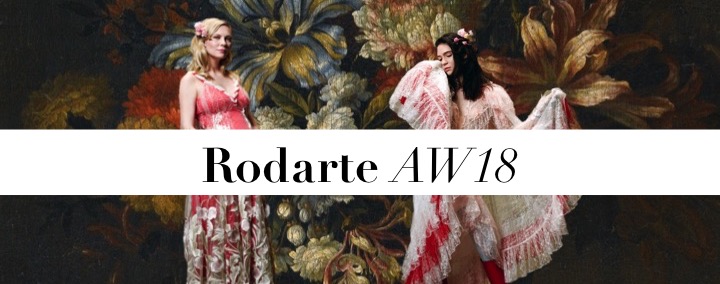 When actors, musicians and celebrities appear in fashion, the result often results in lots of buzz and fuss. But for Kate and Laura Mulleavy, the autumn-winter 2018 Rodarte look-book is about “portraits of friends”. By “friends”, they mean their long-time muse and collaborator, Kirsten Dunst (she plays the main role in the sister’s debutant film, Woodshock – worth watching) who poses in a red, floral gown, pregnant. She looks so blossoming. But it’s not only Dunst! There’s Grimes, whose ethereal, out-of-this-world music matches Rodarte vibes and that couture-ish Edwardiana frock; Chloe and Halle, the R&B duo, who twirl cherry-blossom umbrellas; Kim Gordon in a sharp leopard print-ensemble; Rowan Blanchard, actress/activist in a cute varsity jacket; Gia Coppola wearing a chic, faux-fur look; Miranda July, wearing a silk chiffon dotted dress; and others. Mulleavy sisters pursuit the idea of womanhood in their work for years, and this season they embrace that with double power. Choosing those women (who inspire them and represent different femininities) to model their clothes is the best possible choice the designers could make. I’m really, really in love.