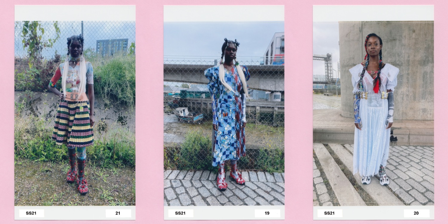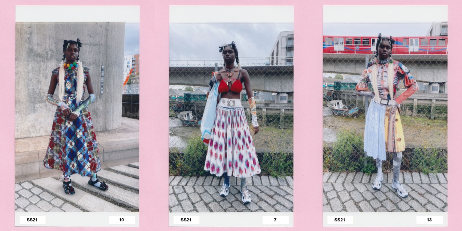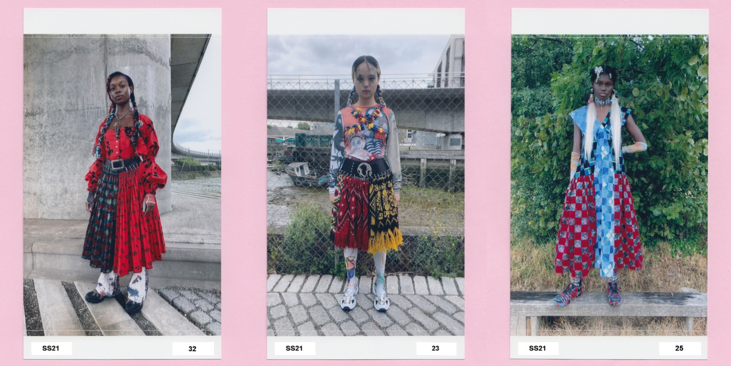 Seeing all the favourite, relatively small, unique brands in the London Fashion Week digital schedule this season is truly heart-warming. And with less pressure of being noticed in the presentations and showrooms marathons the editors and buyers usually have, look-books seem to let that tension off. I’m following Chopova Lowena since its start about two years ago, and I must say I’m impressed how this label evolves with such confidence and thought, simultaneously staying true to its style. Emma Chopova and Laura Lowena took a gathering of their collaborators and interns outside their studio in the postindustrial docks area of Deptford to shoot their spring-summer 2021 look book. “We did it ourselves on our iPhones,” they said, on a Zoom call with Vogue as they shared the pictures. “Everyone we collaborated with is in the look book, except for a Bulgarian woman, who we found on Facebook, who made loom-beaded pieces for us.” So here are their friends, standing on concrete and cobblestones under an overpass, with a washed-up wooden riverboat in one direction, a red commuter train shooting overhead, and the vivid green shoots of untended nature springing up beneath their feet. As a glimpse of a little-seen corner of the Thames shore, the backdrop is a perfect metaphor for the designers’ youthful energy – their uplifting knack of finding beauty and romance in overlooked places, and their ingeniously pragmatic ways of re-crafting fragments of the past into ideas that young women find irresistibly wearable. Some of the Chopova Lowena girl gang pictured are Faye, a painter who contributed designs for their burgeoning line of printed jeans; Jewel, a makeup artist; Ami, who made prints based on cut-up Bulgarian postcards of dogs, roses, and Easter eggs for T-shirts; and jewelry designer Georgia, who made charms. The label is focused on building up signatures, like their accordion-pleated kilts suspended on steel climbing hooks clipped to leather belts, and developing their penchant for dresses in checks and tartans made from deadstock fabrics. All of this continues with even more exuberance and multiple-check action here. Explaining the narratives of how they source and make in Bulgaria, which is Chopova’s family home, is also important to the designers. There are lots more vintage materials from her home country in this collection. “My mum helped me clean and recondition antique wall hangings. People traditionally used to hang them in their kitchens over stoves or above their sofas or beds,” Chopova relates. Bulgarian people are willing to part with them, she says, because they don’t use them anymore. “The fabrics have a lot of baggage. They remind them of communism and folklore, which don’t have favorable connotations.” Look 1, a lovely white drop-waisted linen dress with two deep flounces, is remade from kitchen hangings embroidered with line drawings of folk tales. There’s a top made from lace doilies too. The designers now feel they want to deepen the connection with tradition and with showing the authenticity of how their things are made and by whom. “I think in the pandemic, everyone in fashion has been thinking, What is our brand’s purpose in all of this?” They learned how much their audience likes seeing stuff being made when they ran a video of artisans in Turkey marbling white denim for their new line of jeans. In tough times, their priority is to keep supporting the Bulgarian women who work on the clothes – those with the skills to produce, for instance, the deep accordion pleats that are “made with the one remaining mold in the factory, which was always used to pleat traditional costumes.” Amazing.