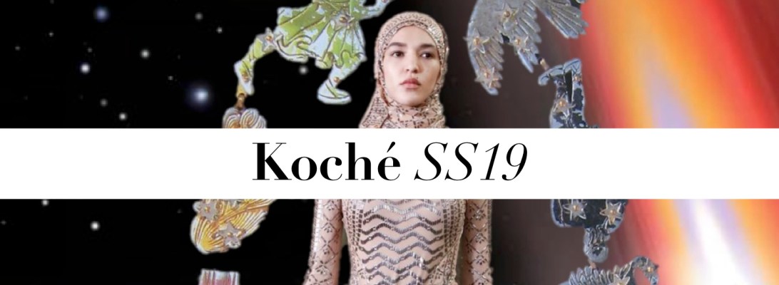 Christelle Kocher, just like Marine Serre, likes to keep her fashion one-of-a-kind, but suited for real life. With the designer’s signature streetwear aesthetic, Koché is the brand that makes sweatpants and hoodies in the most couture way you can imagine – think meticulous embroideries and extraordinary fabric clashes. Kocher’s spring-summer 2019 instantly reminded me of Jean Paul Gaultier’s 1994 collection, so the at-the-time controversial Les Tatouages. Just like in Gaultier’s ‘startling vision of cross-cultural harmony‘, Christelle mixed and fused cultures and ethnicities in her collection, creating a wearable ode to style diversity. There were some very literal references to Jean Paul’s collection (hopefully credited), like the tattoo motif on transparent tops. Also, I noticed some old, good Yves Saint Laurent chic here too – see the le smoking look, styled with a red flower necklace. But mostly, the collection was quintessentially Koché – easy in approach and comfortable.