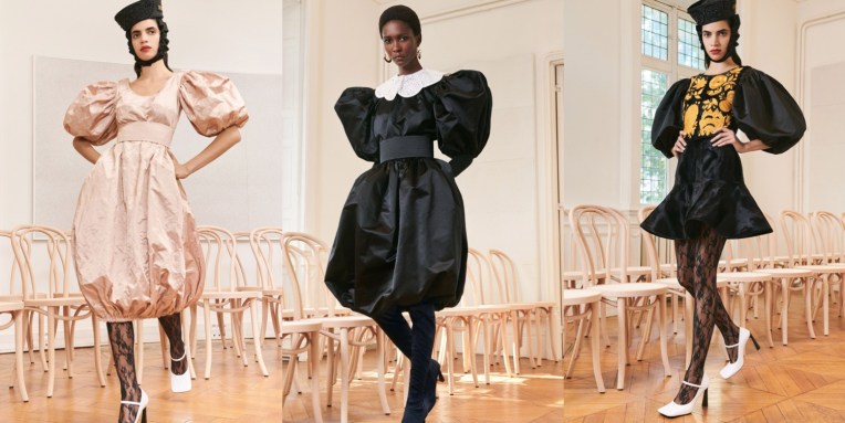 The fashion industry should finally give some love for Guillaume Henry‘s brilliance at Patou. I even think that the buyers should give the brand a chance. Why? Really, nobody else does French chic this good right now. For his presentation, the designer welcomed people to an absolutely delightful Patou runway show that didn’t really happen yesterday. “It’s a show with empty seats and no models!” he laughed. “We’ve turned our studio into a catwalk.” The models you see sauntering across the parquet in their puffballs, voluminous smocks, Provençal collars, and jaunty sailor hats had played their parts, sans audience, a couple of days ago at the label’s Île de la Cité HQ. For spring-summer 2021, Henry offers meringue-sque Provençal-printed puffed sleeves, a pie-frill collar, and a mini-balloon skirt, which all came from his 1980s childhood imagination. But wait, it’s not as easy as it sounds. All made from organic cotton poplin – 100% GOTS cotton, it said. “Yes, we’re 70% recycled and organic materials in this collection,” Henry exclaimed, “and we’re aiming for 100%.” This is the most modern thing about the rebirth of Patou: it comes with full-on French style, transparent sourcing, and non-ridiculous prices. “Patou is about a wardrobe, and it will always be,” said Henry. “But this time we turned this wardrobe into something more fantasy! I wanted to go back to this love of fashion I had when I was nine years old, drawing dresses in my bedroom—and nobody was talking about fear or the economy. It was just about fun, flamboyance, joy, enthusiasm. I wanted to go back to that exuberance.” And so it reads. Exaggerated silhouettes have been steadily inflating over the past few seasons. Ideal timing, then, for the comeback of Henry’s memories of being enthralled by watching the likes of Christian Lacroix on French TV news. “He was a huge influence on me when I was nine, 10, in the late ’80s, early ’90s. So I wanted the silhouette to be ‘couture’ even if you can break it all down separately.” Lacroix, as all fashion history geeks know, started his rise to fame at the house of Patou, so his puffball silhouettes, succulent bows, and French-regional references resonate happily through Henry’s collection. The difference, in the hands of the younger designer, is the practicality and sense of economy that underpins his design. The huge white collars are accessories – they’re meant to be laundered and used as styling pieces. The silhouettes that appear to be frivolous one-party outing dresses (like the captivating Provençal look) are often actually skirts and tops, intended for multiple reconfigurations. “A blouse, a skirt, and a dress,” as he put it. Smart, chic, fun, sustainable. Et voila!