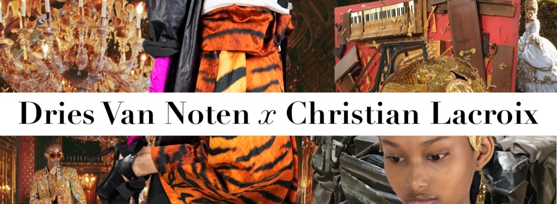 Three weeks ago I’ve been to my beloved Paris – the pre-coronavirus-outbreak times… – and now is the moment to share some of my highlights. A trip to the Dries Van Noten store on the Left Bank is a ritual, but this time, it was even more important because of the very special collection that is there. I mean spring-summer 2020, the one where Dries collaborated with the legendary designer Christian Lacroix. You might have already observed that I really fell in love with this one-of-a-kind collaboration. Or better, say match; dialogue; meeting. When this bacame a fact during the last Paris fashion week, in that very moment the planets moved or maybe the time stopped. This collection is something you never thought you needed in your life. I’m still in absolute awe, while going through the looks over and over again. “The idea is to bring fun ideas, nothing too serious, things that I think perhaps we have lost a little in fashion”, Van Noten told the press back then. “I wanted to do something joyful”. Dries and Christian weren’t acquainted before their collab (it came up spontaneously), but their contrasts became actual similitaries once they started working together. They fulfilled each other. Lacroix’s iconic legacy of ‘never too much’ combined with Van Noten’s mastership of colour-and-print balance. Looking at the final result, all the Lacroix signatures are in place, filtered through Van Noten’s sensibility: polka dots, broad stripes, animal prints, ruffles, matador jackets, gigot sleeves, silks woven with scaled up, bright flowers, pouf skirts, duchesse satin and grosgrain. The vocabulary of Dries Van Noten is fused with that of Mr. Christian Lacroix throughout: said jacquards have been scanned and appear as prints across cotton and organza; lightweight polyesters, made out of recycled plastic bottles and coated papers rustle alongside precious French silks; basic white tops are decorated with a single overblown embroidered sleeve here, jeans with an appliquéd feather or feather print on one leg there. If Mr. Lacroix was among the most feted couturiers of the latter part of the 20th century (in his own words, he “failed with ready-to-wear”), Dries Van Noten is one of the pret-a-porter leaders of today. It’s a match made in heaven. Such fashion wonders happen very, very rarely, so seeing them IRL, in the charming Van Noten boutique, was an ecstatic experience. Below are photos I took there, mixed with my new collages feauturing the collection photographed by Tommy Ton. As most of us are staying at home now, here‘s a link to the interview where both designers talk about their work – and even if you’ve seen it, it’s worth rewatching!