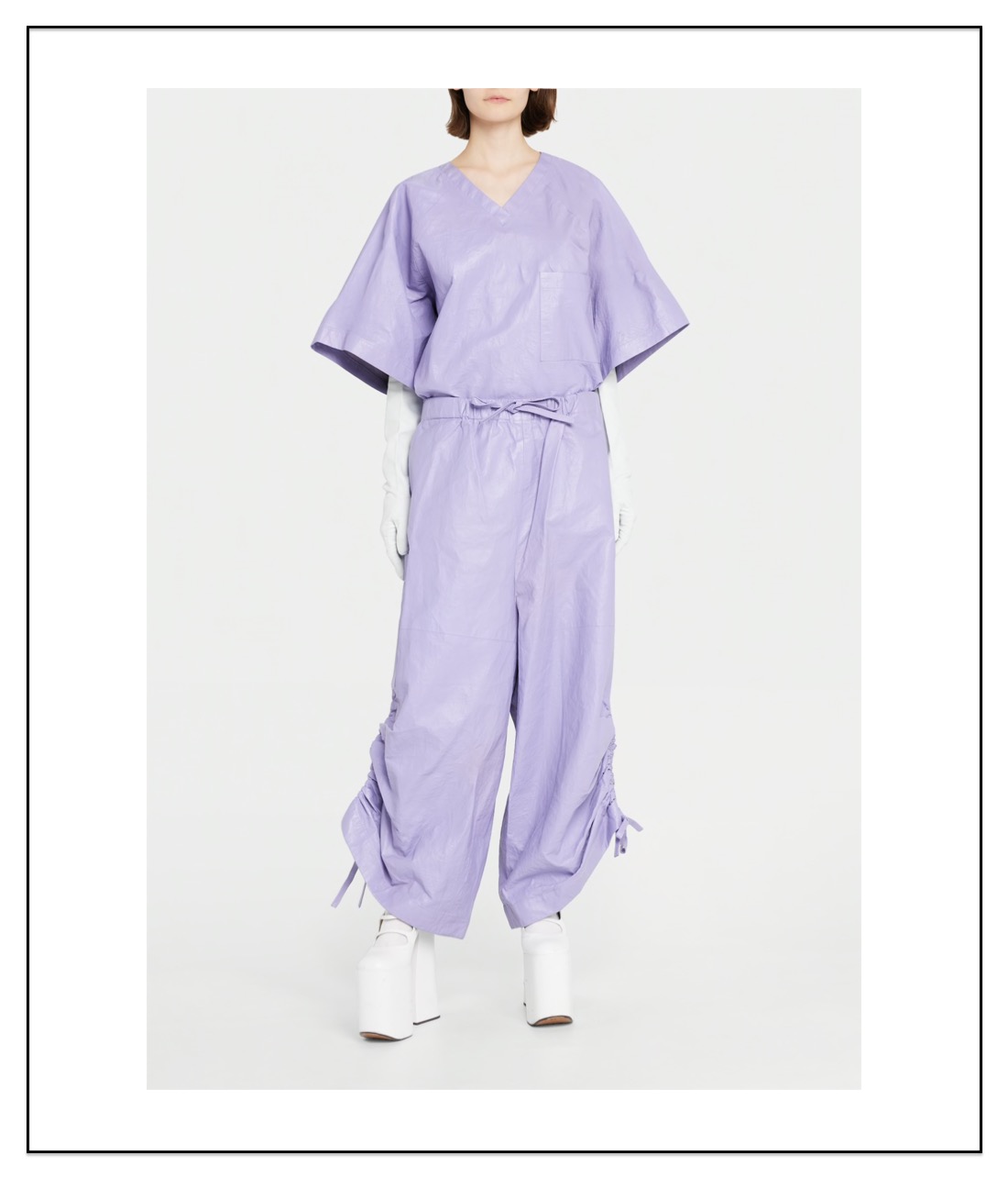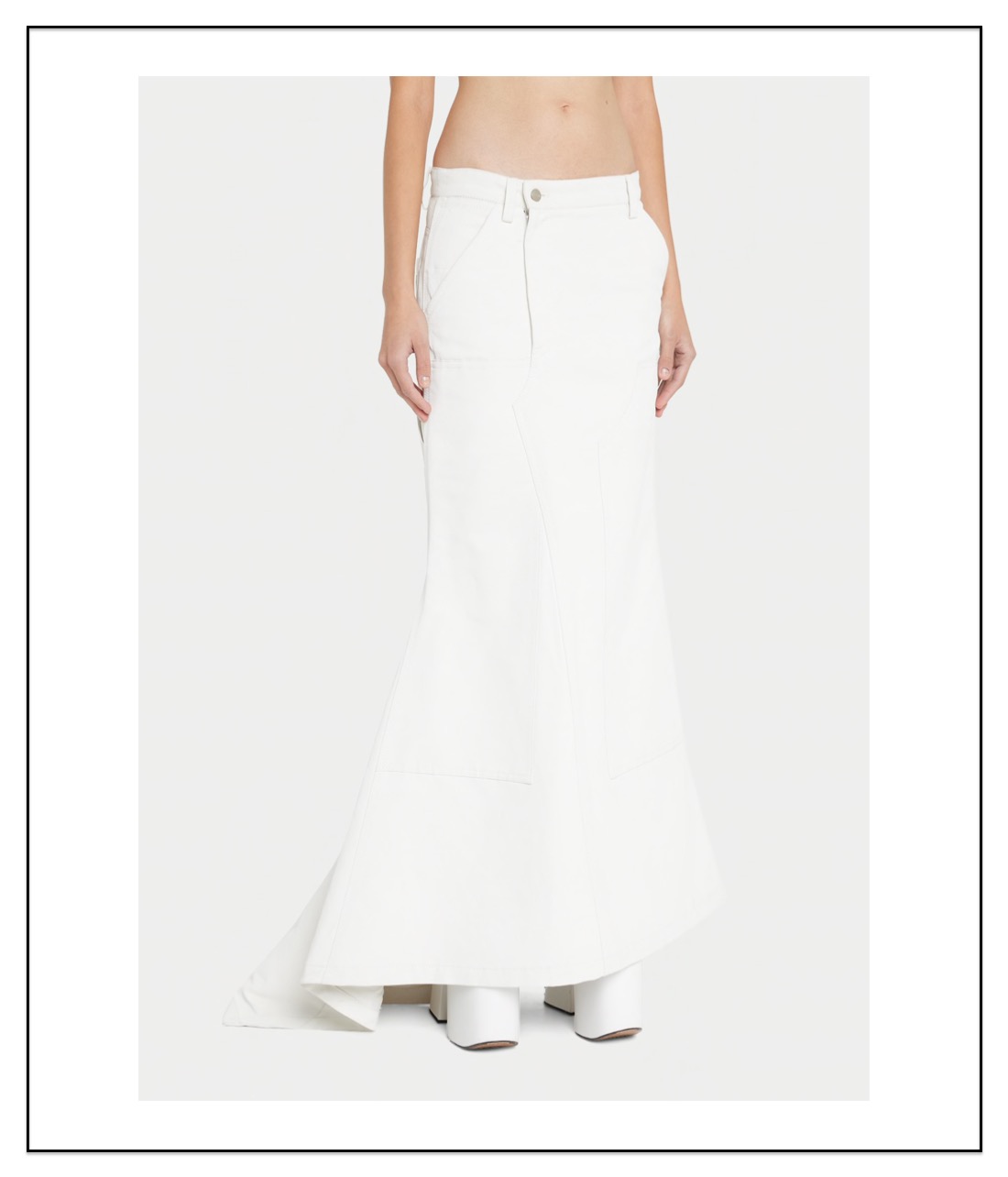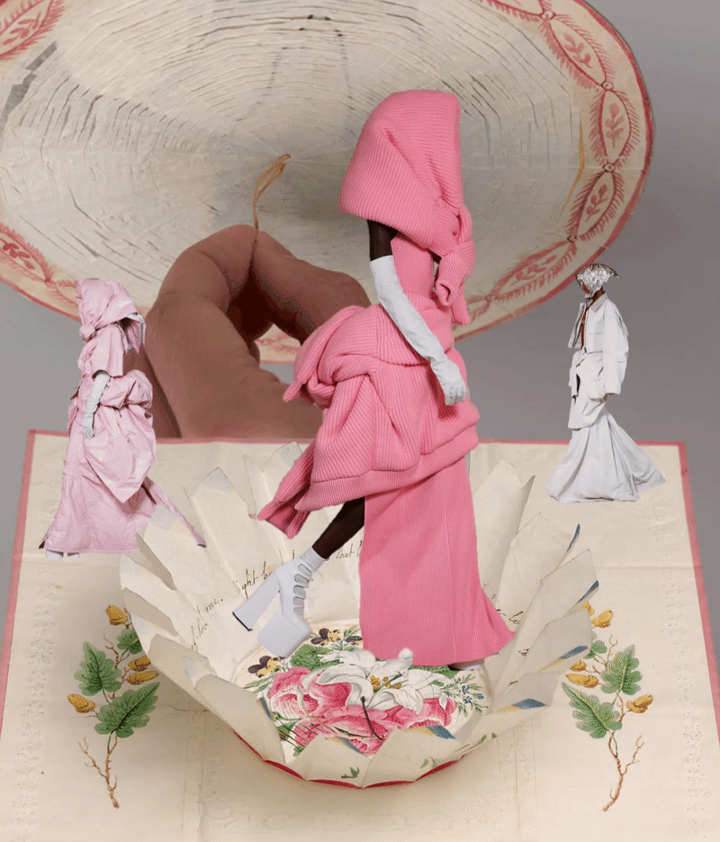 At first glance, Thom Browne‘s pre-fall 2023 collection has a much more sober spirit than spring, with its shades of navy and gray, and its more typically Browneian silhouettes. But Thom’s clothes typically reward close inspection – and you’ll find humor in them too. See the intarsia’d double-breasted coat in which a lifeboat full of sailors is dwarfed by the giant sperm whale, or the tailored skirt suit in a wallpaper print depicting the final battle at sea between Captain Ahab and Moby Dick. On the accessories front, Hector the bag has made some new friends in the form of not just the victorious whale, but also the Pequod, the doomed ship. About this season’s silhouettes. Though there’s a’60s-short shift or two, Browne’s instinct was to cut his tailoring lean and long, often layering pants underneath skirt shapes to extend the line. Accessorizing the tweed separates with tweed tights created a similar elongating effect. Remarkable.