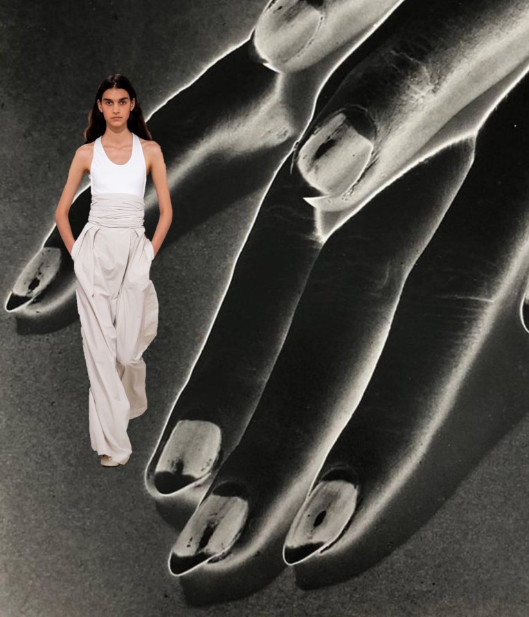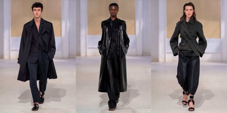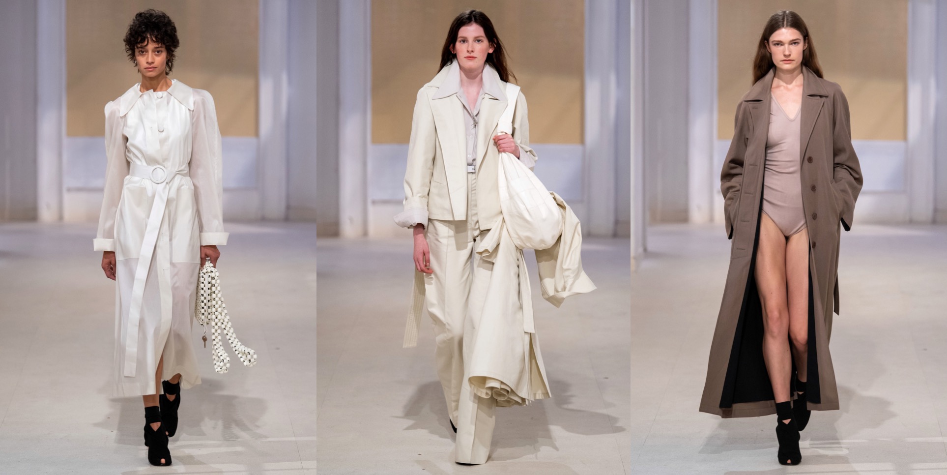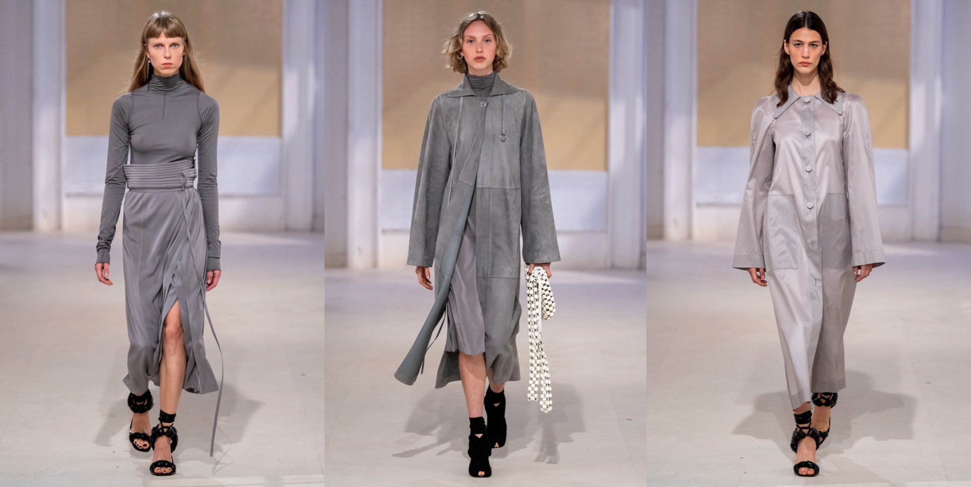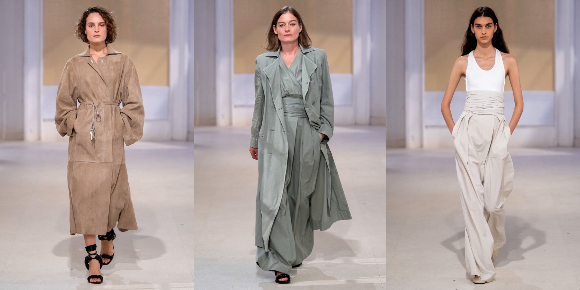 At Lemaire, references and messages are absent, or very subtle, and comparing to most other labels, here the clothes do the talking. Christophe Lemaire and Sarah Linh Tran‘s woman doesn’t change from season to season – her style is consistent, just as the label’s style. For spring-summer 2020, the designers used a colour palette full of timeless neutrals, which perfectly fits their new bodysuits, pleated stone-colored chinos with a rib-grazing wrapped waistband or over-sized waxed-cotton coats. The brand showed a handful of belted styles, all of them easy enough to be tossed over a handbag strap when it gets warmer. In the designers’ words, the collection is about “stable, but slouchy” shapes. Its impossible not to be convinced by Lemaire’s comfortable elegance this season.