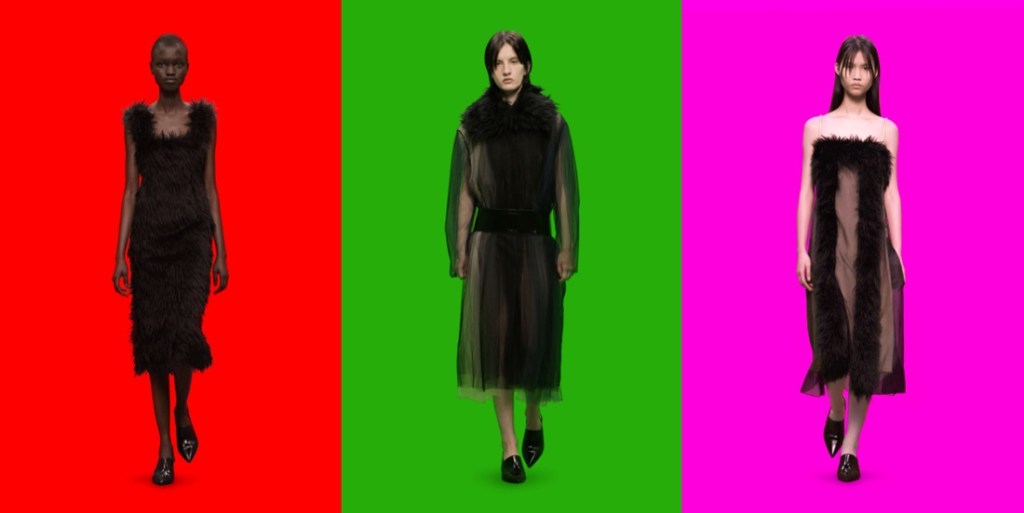“Sexual Selection” is what Christopher Kane called his intriguing autumn-winter 2022 collection. All things sensual, erotic and kinky are Kane’s aesthetic vocabulary, and the latest offering is a sharp range of the designer’s favourites, as well as some new experiments. Coded references to mating behavior in nature – plants, animals, humans – have always been embedded in his work. This time, he drew a comparison between bird of paradise plumage and the blue-red-yellow of the tulle strips he draped into semi-sheer dresses – one of them had a black harness – with bodices laid over the breasts in the same material. That’s just for starters on Kane’s menu of fetish-y fashion play. He did it with outright skill in slick, black, wipe-clean cutaway dresses – pointy bras and gathered skirts suspended on matrixes of gold snake chains. There’s a fine line between sophisticated hinting at something and blatantly putting it out there. Wearers of Christopher Kane have appreciated his skills in that direction for ages. In these 34 looks, he’s done his thing – using double-take materials like wool faux fur, slinky gold chain mail, and white net drapes in all kinds of wicked ways.