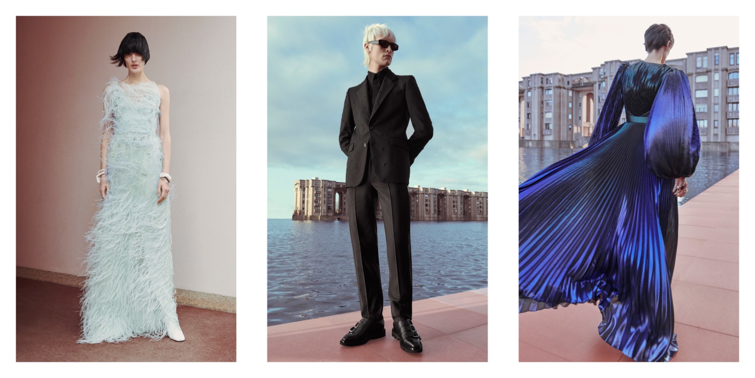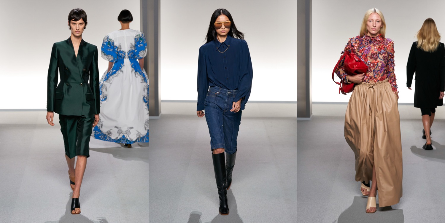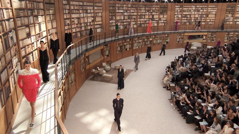 Clare Waight Keller’s spring-summer 2020 haute couture collection for Givenchy was rooted in her memories of visiting the garden rooms planted at Sissinghurst Castle by Vita Sackville-West and by reading the passionate love letters between Sackville-West and Virginia Woolf. “It’s one of the most romantic places in England,” Waight Keller said. “I’m quite obsessed by the place.” Famously it was Woolf’s involvement with Sackville-West and dreaming through the Elizabethan history of the Sackville-West family house that inspired Woolf to write her time- and gender-traversing novel Orlando. Coming back to the collection: Waight Keller once again proved her strengths in tailoring. But what truly stunned the audience were the summer-garden colors and swirling 3D-petal forms of dresses. For the designer, it was “my own love letter to Hubert de Givenchy because I went into the archive for this collection and looked into the history of the house from the very beginning.” Photographs of the pristine flower-lace gowns he made in the era he designed for Audrey Hepburn were pinned to her inspiration board. Givenchy, as it happens, was dedicated to garden design too. The outside edges of the jacket of a neat black pantsuit were implanted with a halo of gypsophila embroidery – this one looked incredible. There was a bit of “couture” casual: multilayered tulle petal-pink skirt overlaid with Chantilly lace was worn with a sheer black T-shirt. Waight Keller finished up her show by sending out Kaia Gerber as the ultimate fantasy bride in an off-the-shoulder cut-lace white chemise and umbrella hat that swooped back over the shoulders, amplifying the volume of the entire look.