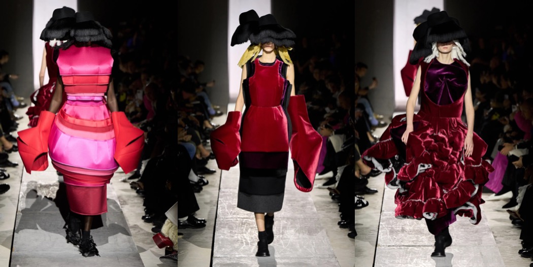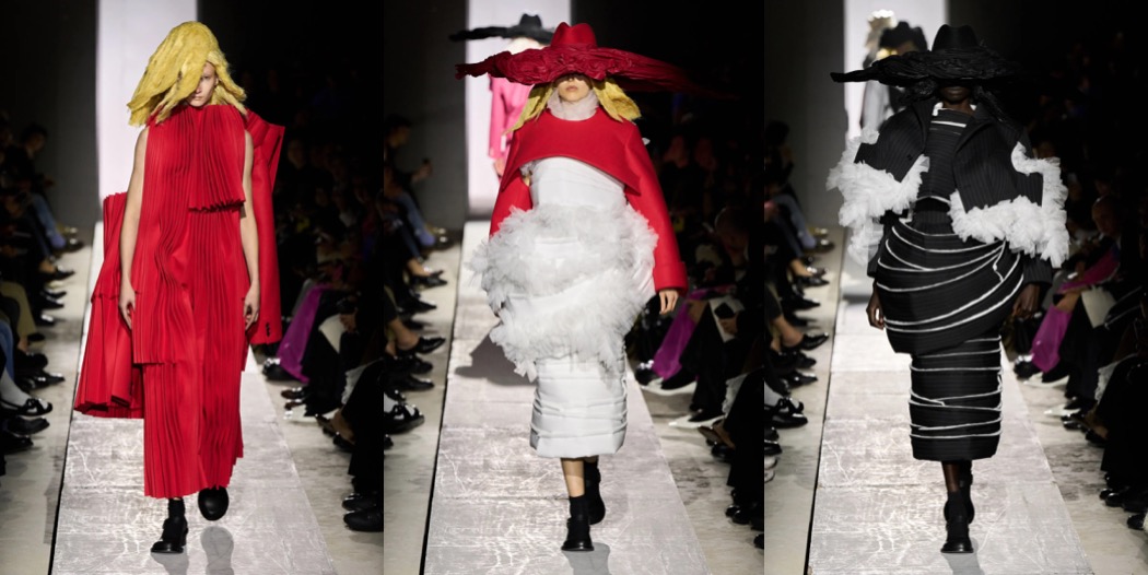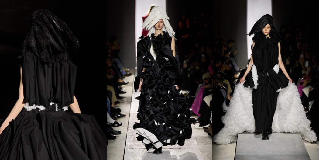 This season, Rei Kawakubo intentionally “damaged” materials to create something raw and radical. Artisan lace was shredded. Jute and brocade received the rough, John Chamberlain treatment. Anything once considered precious was mistreated without mercy. The result: heart-wrenching beauty – a vision that captures the pain of the contemporary world, silences the omnipresent noise, and transforms imperfection into absolute power. READ MY FULL REVIEW HERE.