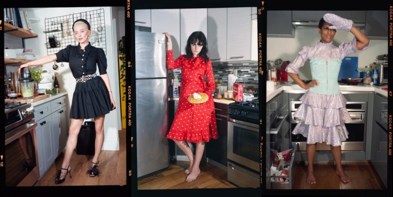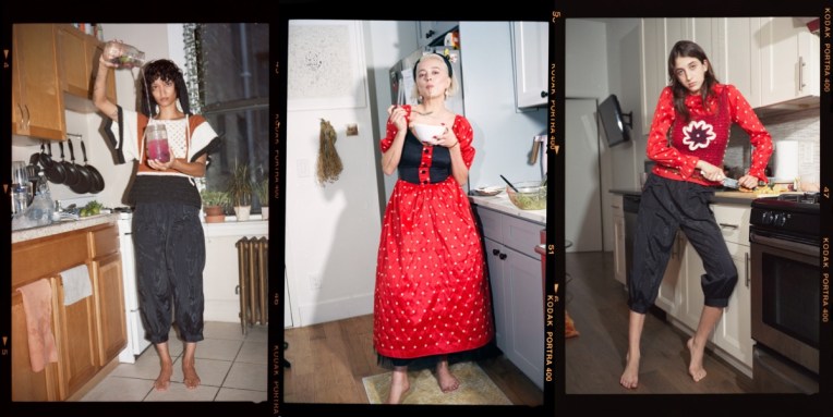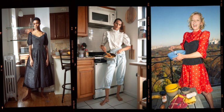 Many brands that start with one, sharp, distinct, signature piece, quickly reach its peak popularity… and equally fast fall down the cliff of oblivion. Just think of all the bag labels that had that singular “it bag” and couldn’t maintain the momentum. But Batsheva is a different story. First, Batsheva Hay‘s dresses just don’t get boring – how can such versatile must-have ever become outdated?! – and second, the designer gradually expands her universe, making old clients come back and new ones feel attracted. And the brand’s pre-fall 2021 look-book makes it even more relatable and relevant to our lockdown lives and habits. In her work, Hay has taken the symbols of femininity, domesticity, and intimacy and made them things for women to be proud of, not ashamed of. Typically, the industry rewards designers who offer more modern, minimalist takes on female style or versions of womanhood that are so fantastical and exaggerated they can only be described as “whimsical” or “dreamy.” Hay’s work is neither: it’s quirky, messy, funny, and embraces the chaos of a woman’s life. And in the new season, the Batsheva woman even cooks in Batsheva. The collection’s fantastic look-book stars real women, from club legend Susanne Bartsch to actress Gretchen Mol, wearing her latest wares in their own kitchens. Hay and her husband, Alexei, the photographer, traveled around New York taking the portraits, discussing the recipes with each woman, and eating each meal. The results will be published in a cookbook next year. “Seeing the way other people wear the pieces is so important,” Hay says, stressing that each piece must feel like “a wanted garment.” If it doesn’t elicit love from her ladies, it doesn’t get made. The garments that did get made continue to recast the possibilities for ruffles and floral prints. Hay is leaning into big 1980s graphics and piecrust collars à la Princess Diana. Those developments, she explains, were designed with an eye to Zoom routine. From the waist up, she’s offering a new bolero jacket, added embroideries and details on yokes, and expanded her offering of gorgeous crocheted tanks and hooded pullovers. Pants, skirts, and a new wrap dress round out the offering. “When I started, I thought I would run out of things to do with ruffles on dresses pretty quickly,” she told Vogue with a smirk. But trying to define what it means to be a woman in this world is an endless journey – and one of constant reinvention.